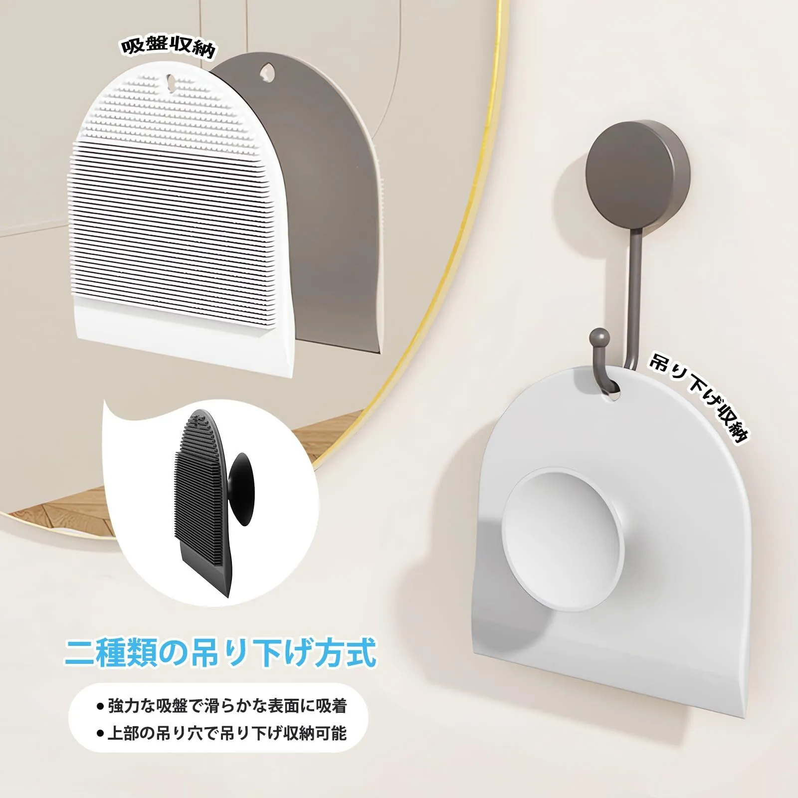 【携帯収納】クリーニングブラシはキッチンや浴室の滑らかな壁面に簡単に吸着します。ブラシ上部には吊り下げ用穴が付いており、使用後は壁やフックに掛けて乾燥させられます。これにより表面が壁に接触するのを防ぎ、キッチンスペースを節約しながら衛生的な使用をします。