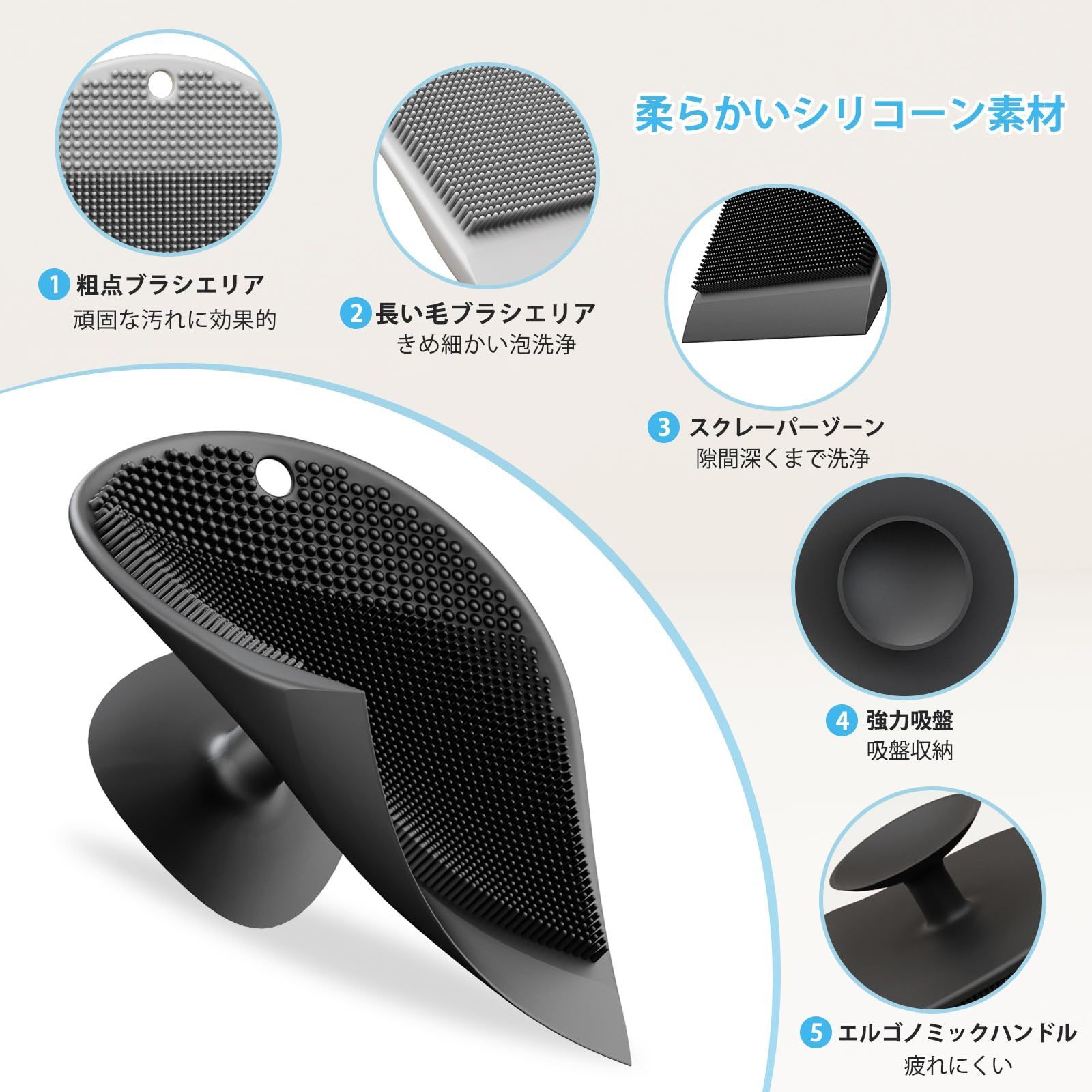 【安全で健康的な素材】高品質シリコーン素材を使用。安全で肌に優しく、柔らかく柔軟性があり、シンクの角や曲線にぴったりフィットし、徹底的に洗浄できます。