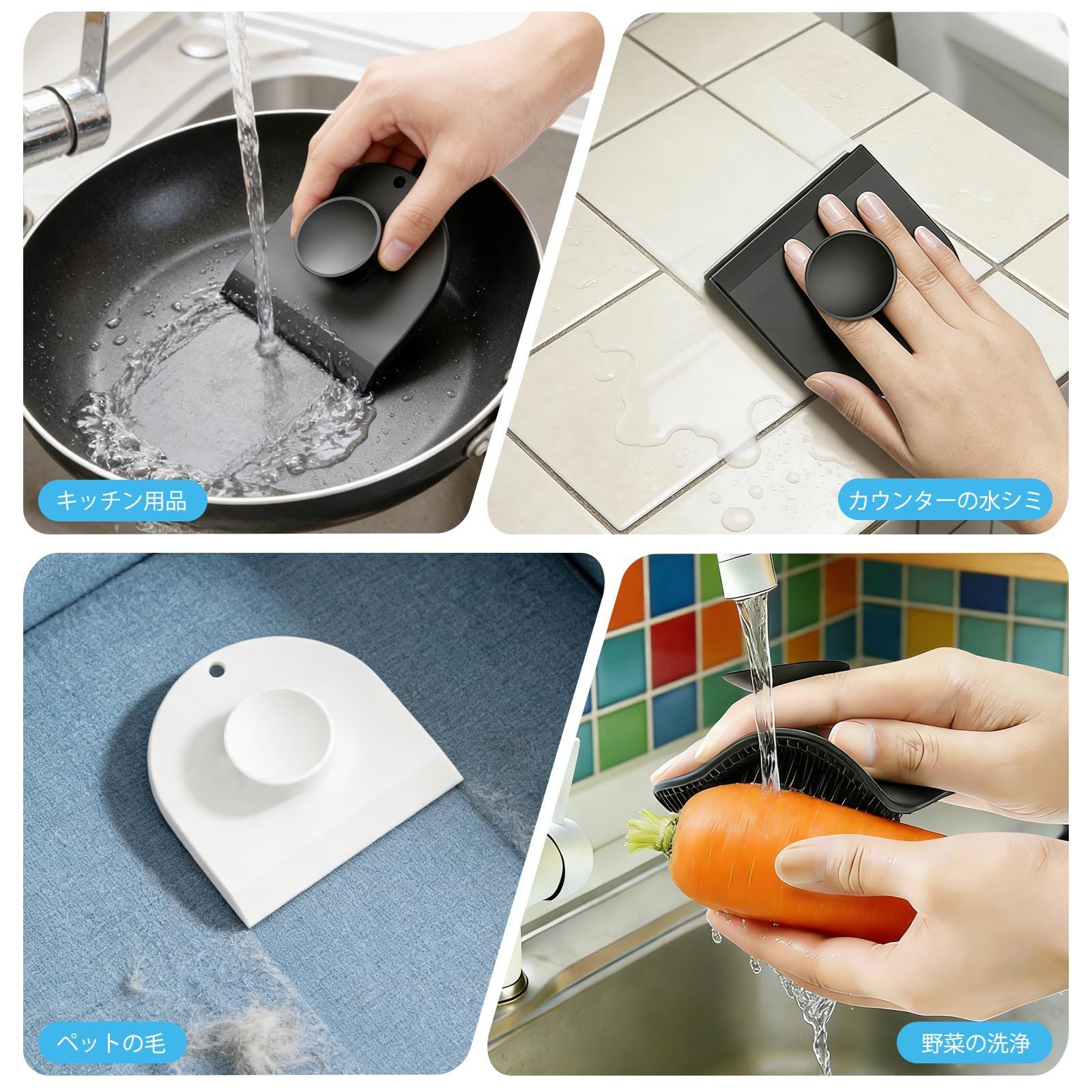 【用途が広い】この掃除ブラシは、台所の食器洗い、浴室の掃除、カウンターの水切りだけでなく、野菜や果物の洗浄、ガラスの水切り、ペットの毛の掃除、断熱マットの掃除にも使えます。用途が広く、便利で実用的です。