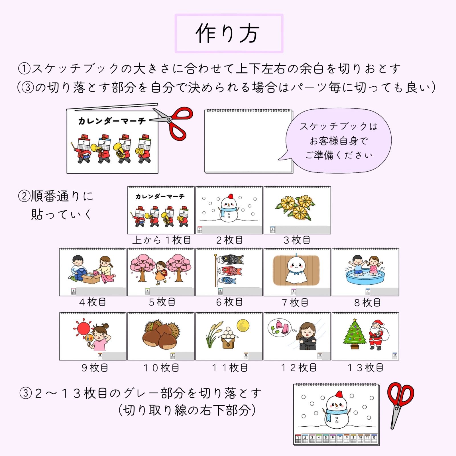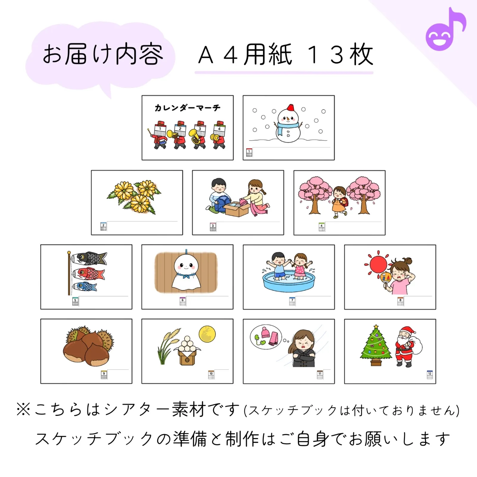 スケッチブックシアター素材「カレンダーマーチ」¥1500