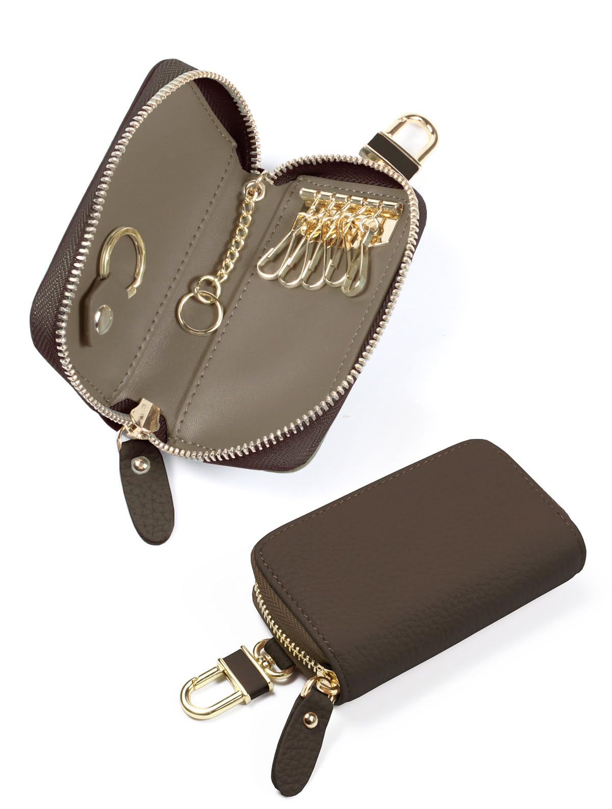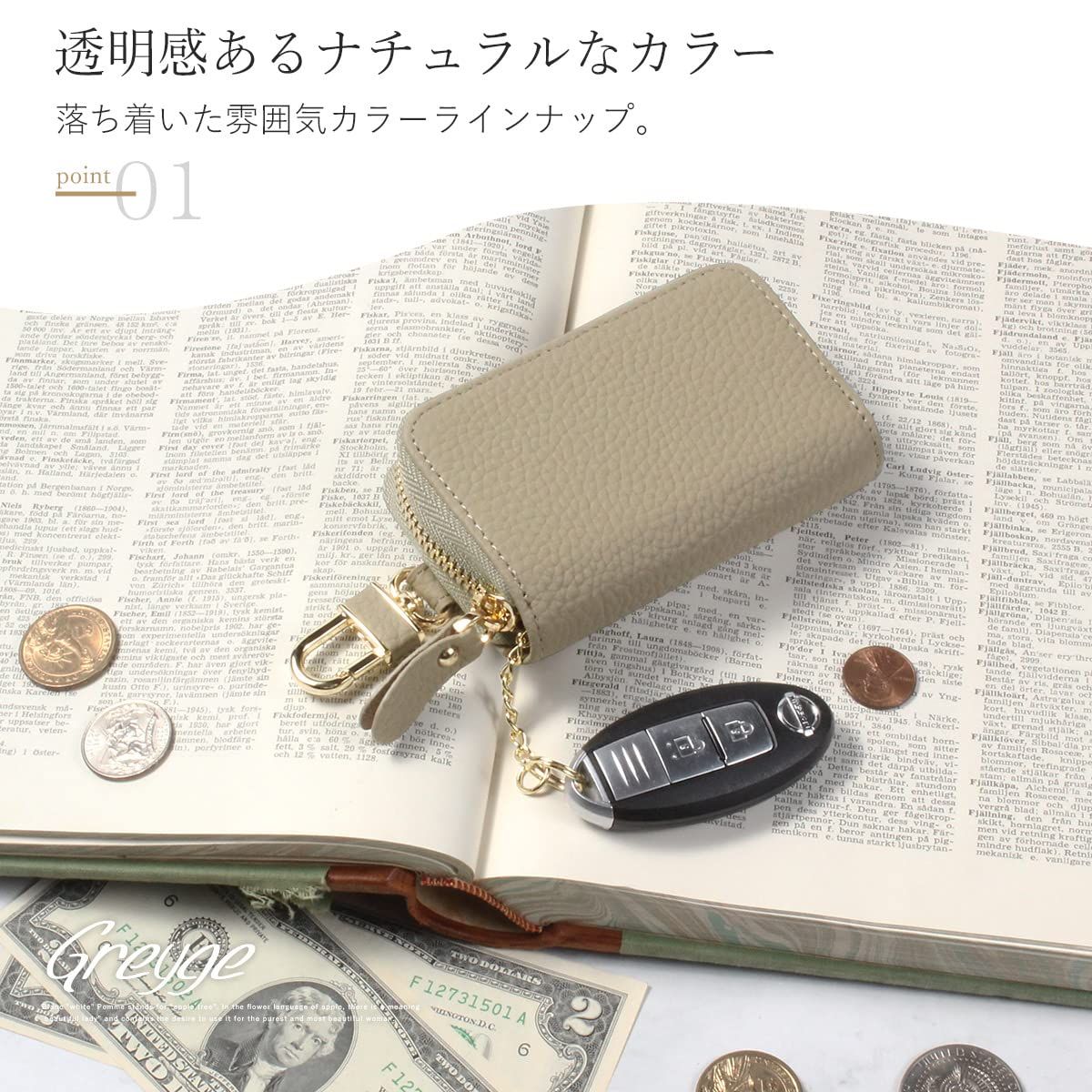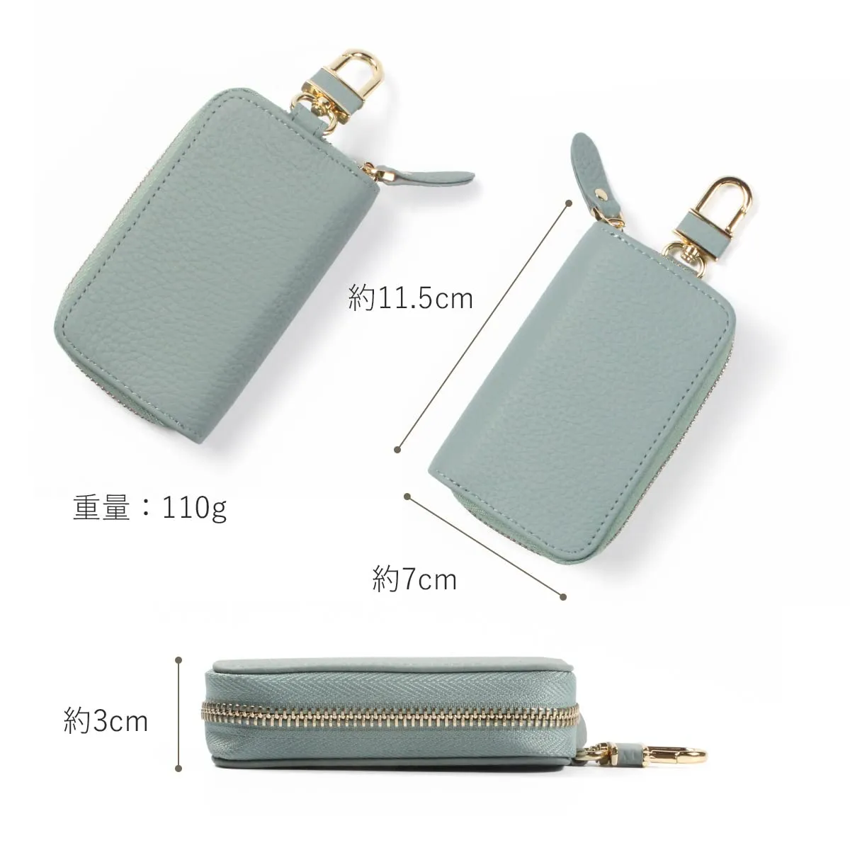 【本革だけの上質感】 くすみカラーのまっとなシボ革が好印象のキーケース。