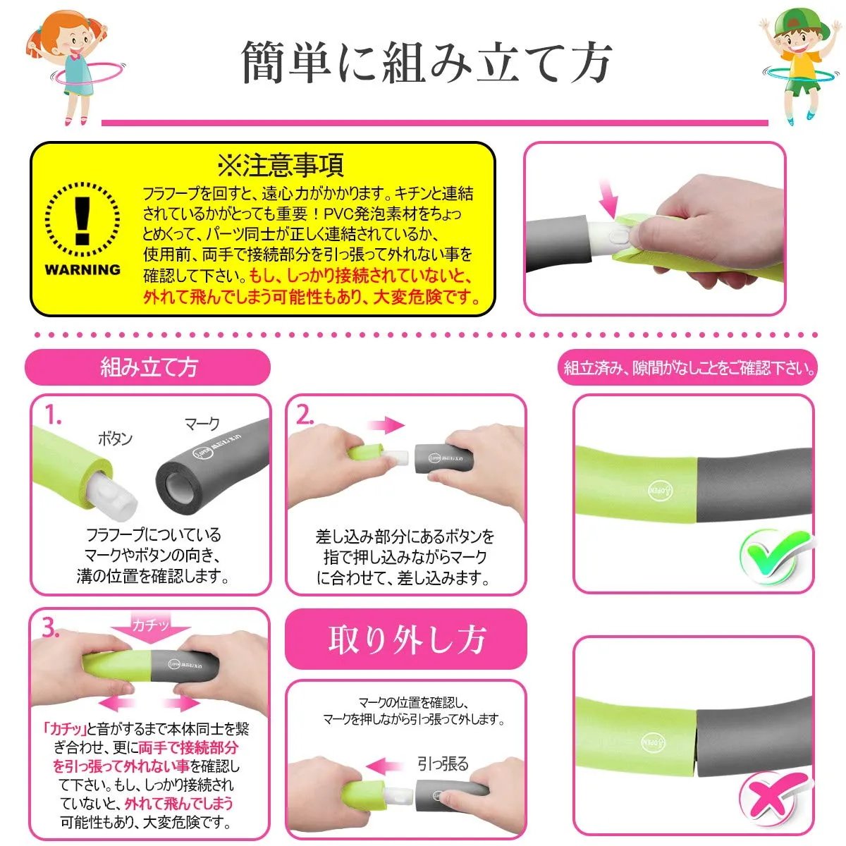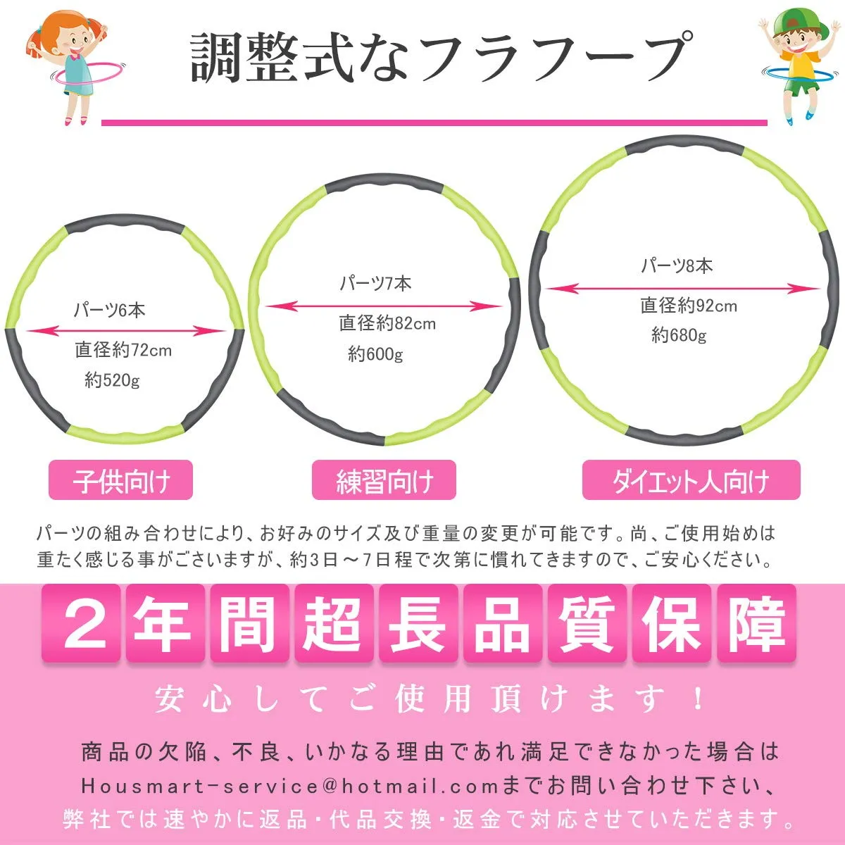 【2025年 サイズ調整可 組み立て式 ダイエット 体操用品 ウエスト くびれ 引き締め 有酸素運動 サイズ調整可 直径約96cm 8本組 子供用