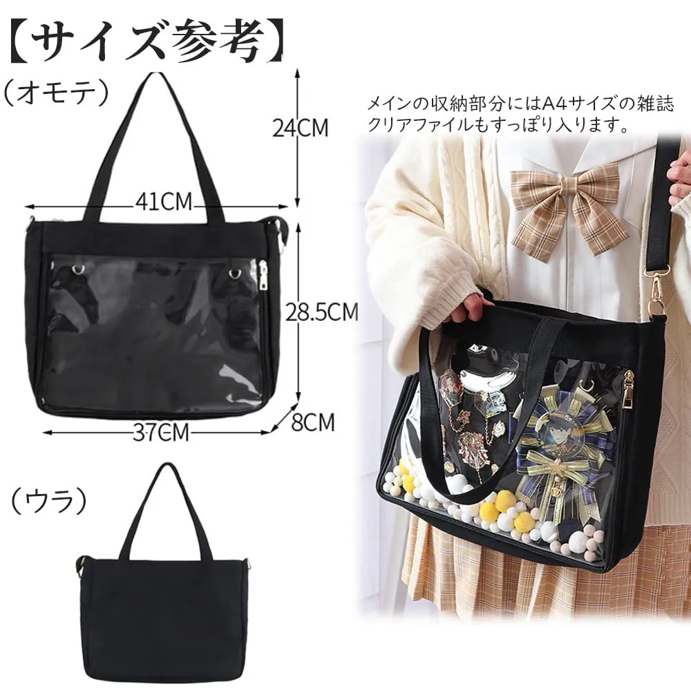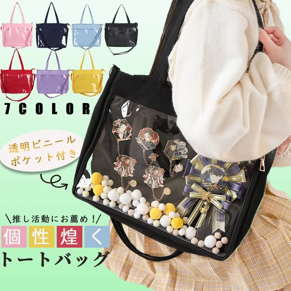 [ALL DAY Shining] トートバッグ 手提げバック ショルダー クリアポケット 痛バック いたばっぐ 痛バ 推し活 オタ活 コンサート イベント A3 A4 横長