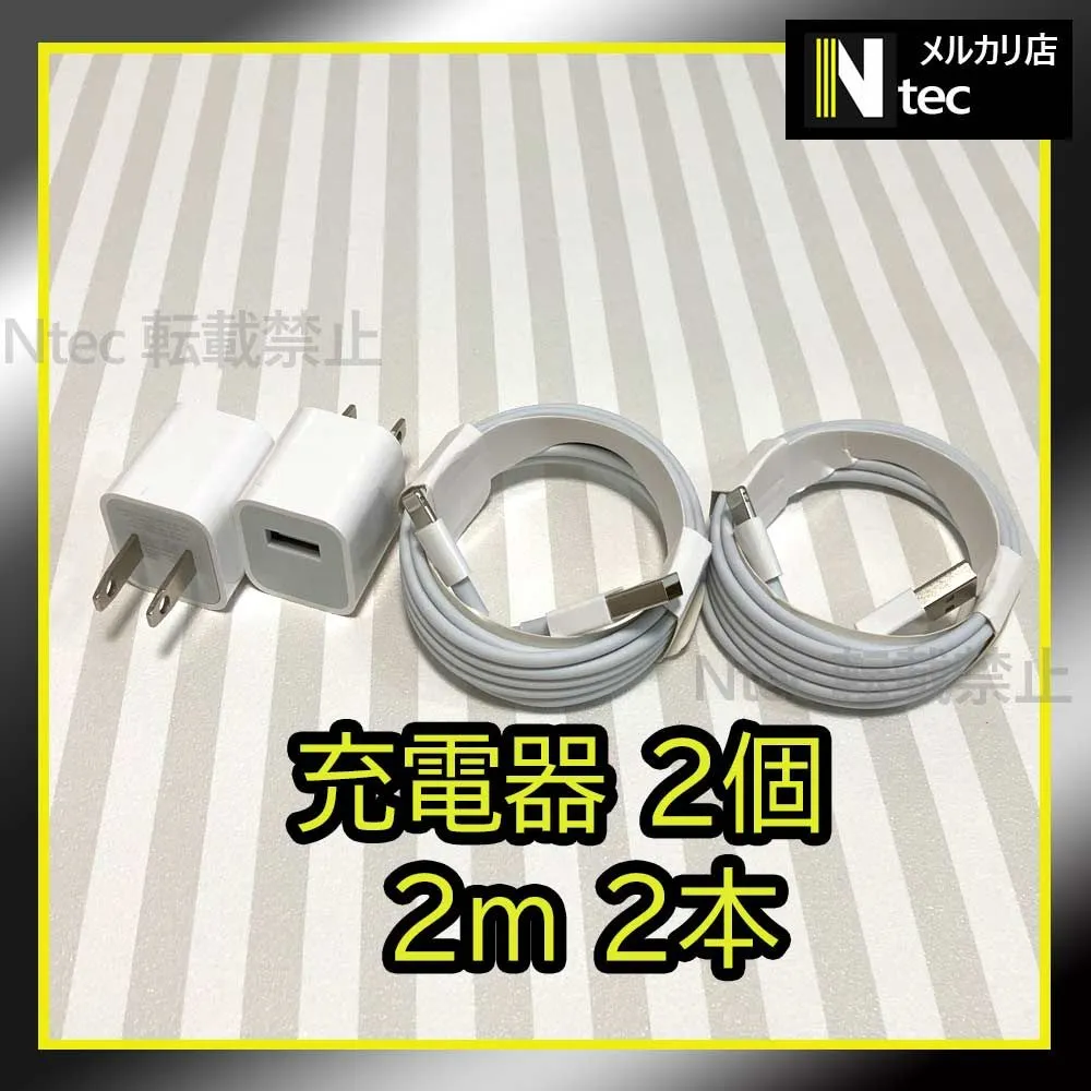 2mケーブル&充電器セット(計4点) ACアダプター ライトニングケーブル iPhone USB充電器 アイフォン コンセント 純正品同等 充電コード 新品 [6s]