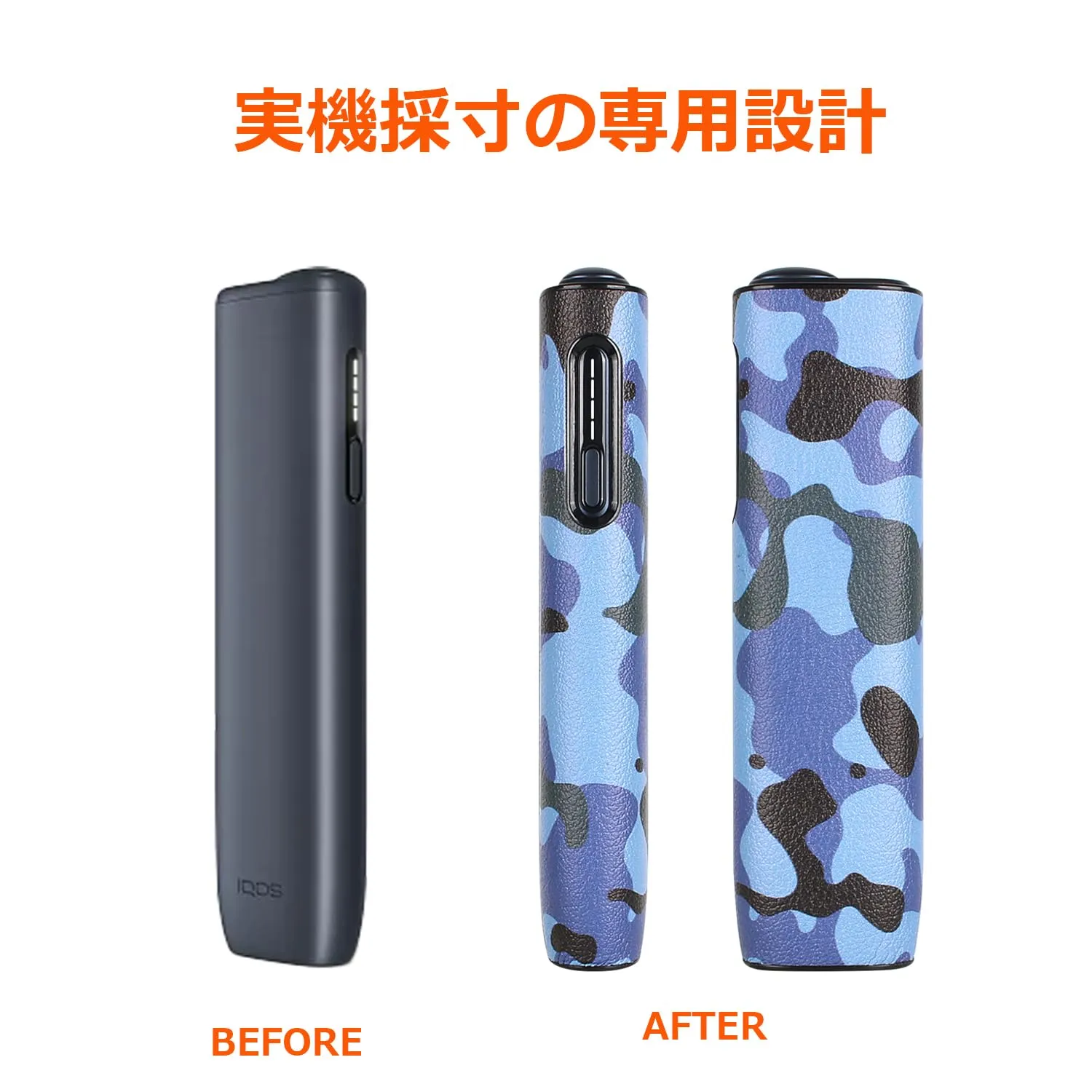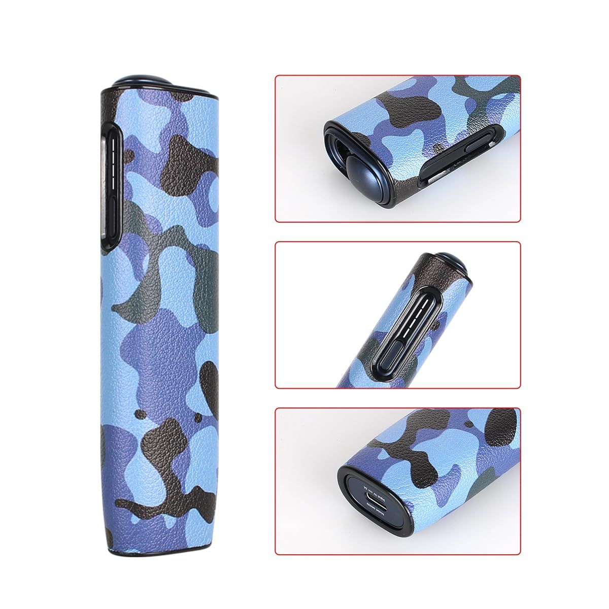 KAZARI 加熱式たばこ用ケース IQOS イルマ i ワンに適合する 迷彩柄 新型 ILUMA i ONE 用のカバー PUレザー アイコス互換品 滑り止め 360°全面保護 耐衝撃 持ち運び便利 アクセサリ プレゼント (ブルー)