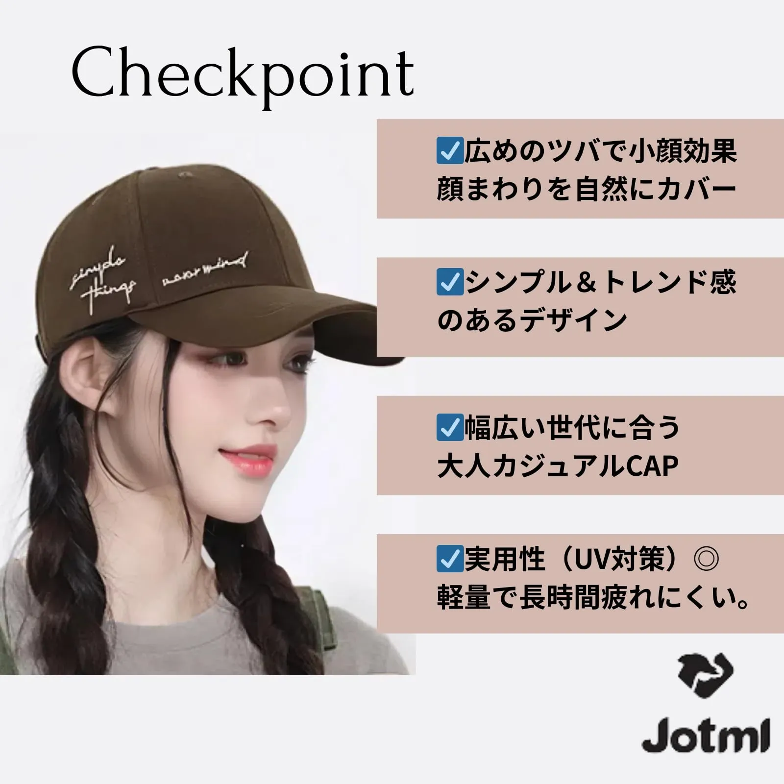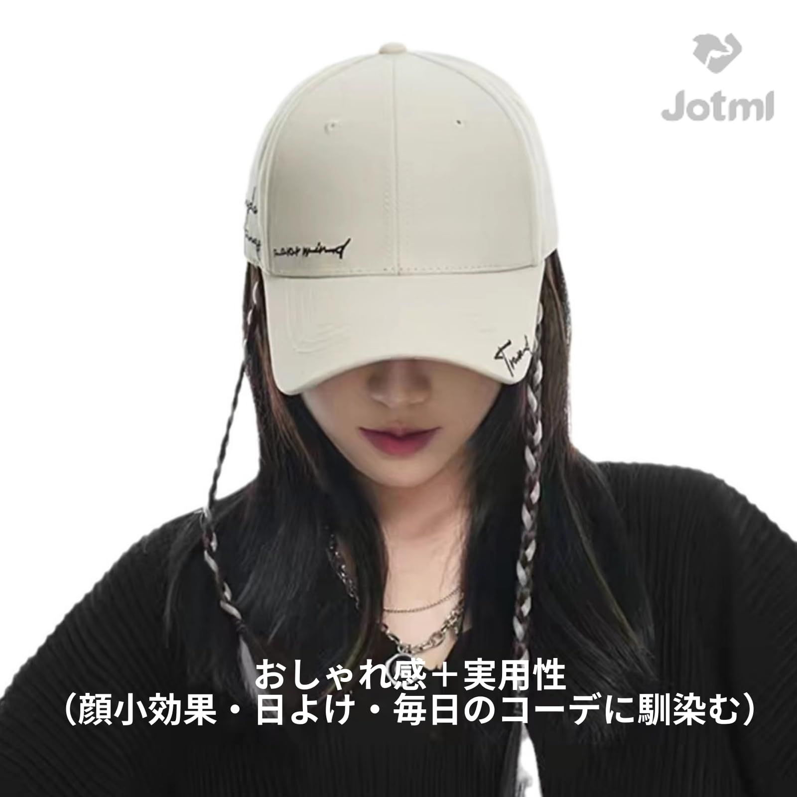 [Jotml] キャップ レディース 帽子 英字 ロゴ ワンポイント アジャスター サイズ 調節 UVカット 小顔 深め 紫外線対策 オールシーズン CAP