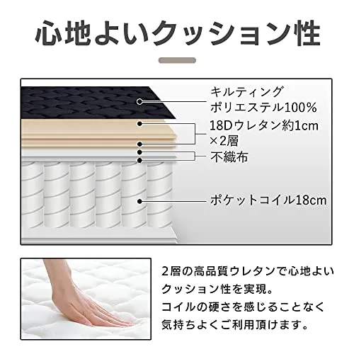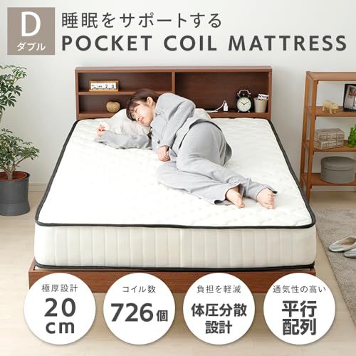 アイリスプラザ 高密度ポケットコイルマットレス 身体の負担を軽減 独立コイル726個 極厚20cm 表面さらっと しっかり硬め らくらく設置 圧縮梱包でお届け ダブル ホワイト×ブラック PKMTN-D・