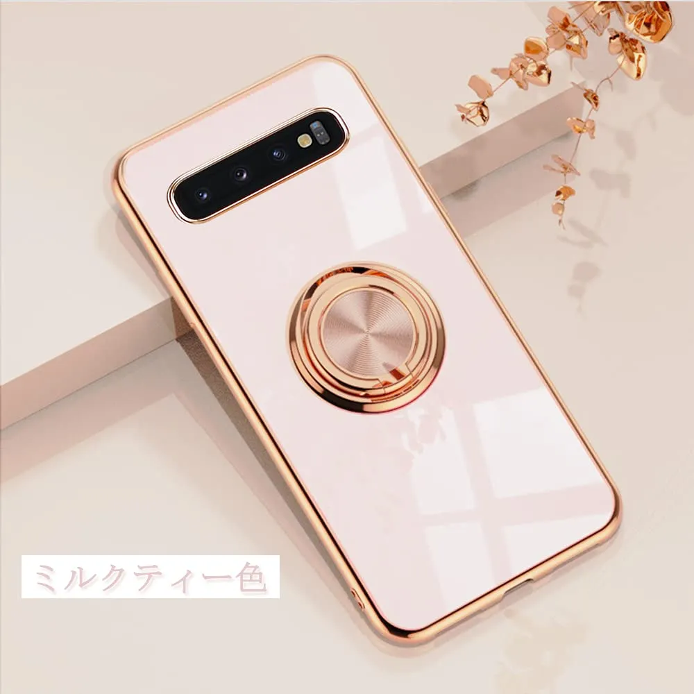 Galaxy s10 用 ケース SC-03L SCV41 ケース リング付き メッキ加工 レンズ保護 tpu ソフト ストラップホール付き 耐衝撃 スリム おしゃれ スマホケース 携帯カバー ギャラクシーS10 用 カバー (Galaxy S10 4G, ミルクティーの色)