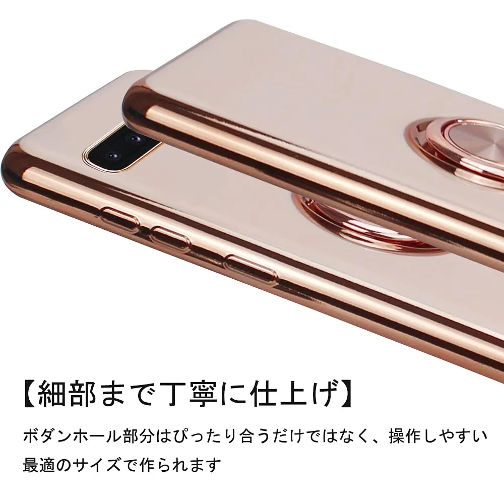 JOOBOY Galaxy ケース リング付き メッキ加工 レンズ保護 tpu ソフト ストラップホール付き 耐衝撃 スリム おしゃれ スマホケース 携帯カバー