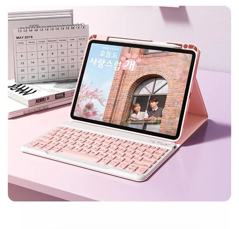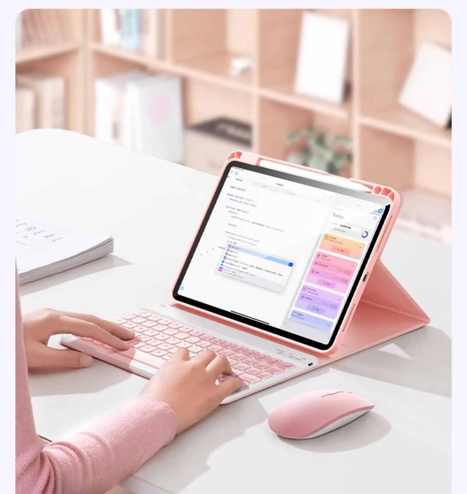 【ワイヤレスマウス+Bluetooth キーボード+保護ケース】3点セット, キャンディーカラー キーボード・マウス付きの可愛いこちらを!色がとても可愛いです。キーボード裏も磁石でくっつくタイプなので簡単にズレることはないです。ノートパソコン風で可愛い