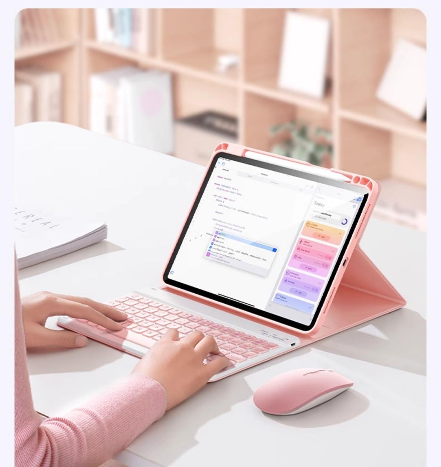 マウス付き iPad キーボードケース: 1, 3点セット:キーボード&保護カバー&マウスの3点セット 2,キーボードはWindows・Android・iOSの3種類のOS対応なので 3,ワイヤレスマウスは3段階DPI調整可能 4,カラーキーボード 5,上側ペンシル収納 6,キーボードとマウスはBluetoothで簡単接続 7,鮮やかなカラーキーボードがおしゃれかわいい 薄くて軽い