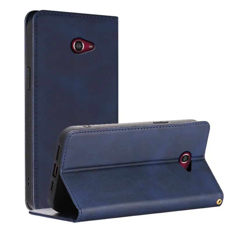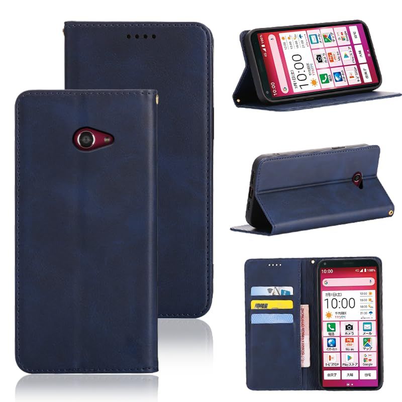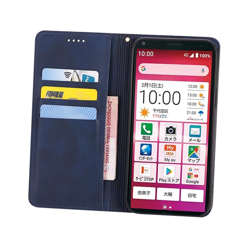 適用 京セラ BASIO4 KYV47 / かんたんスマホ2 A001KC ケース 手帳型 カバー PUレザー カード収納 財布型 耐衝撃 ケース マグネット スタンド機能付き 5色 (深い青)