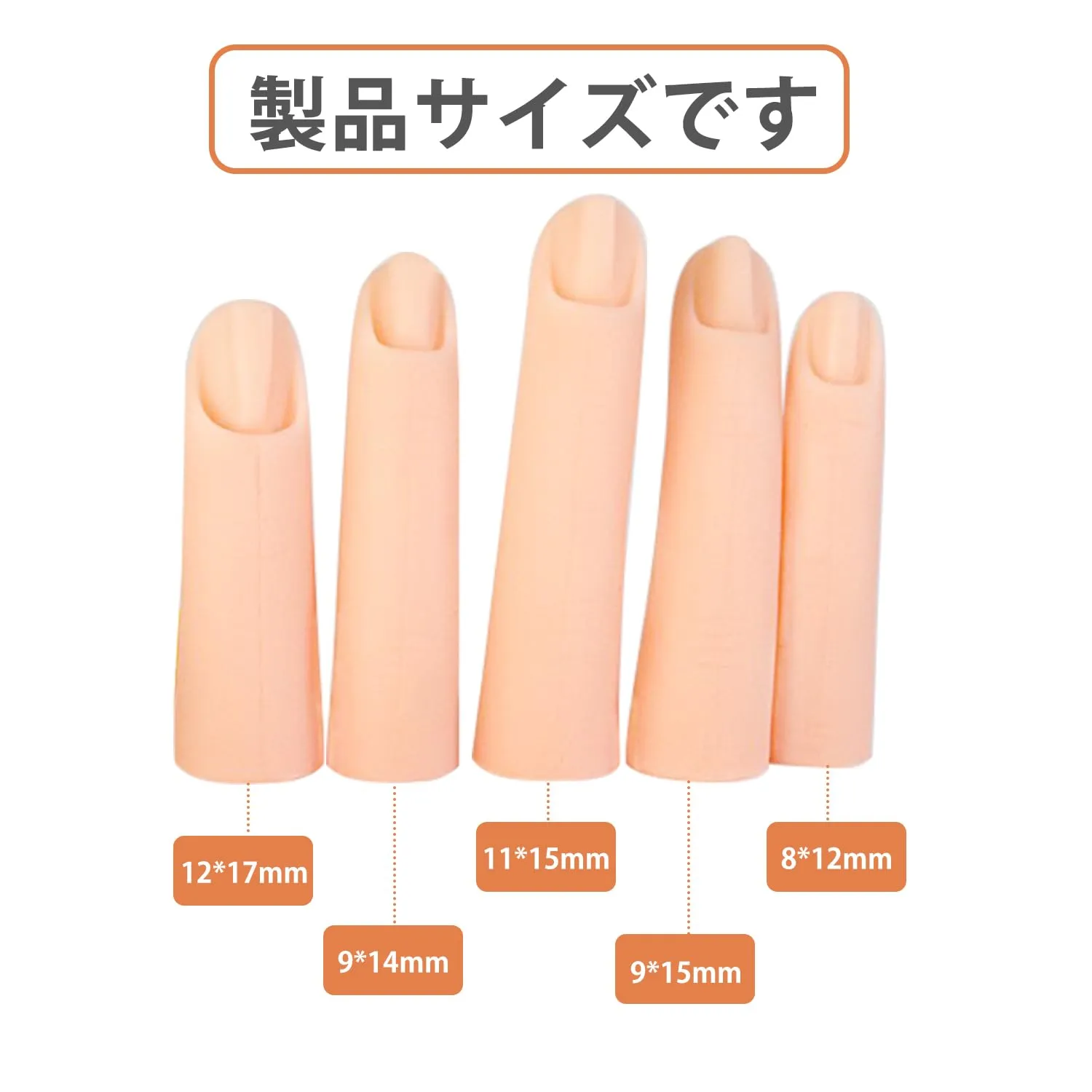 サイズ違い:ネイルアートツールは5種類の指のサイズがあります、ネイルチップ挿入するのに適した5つのピースを選んで使用するか、両面テープやネイル・グルーで固定することができる。