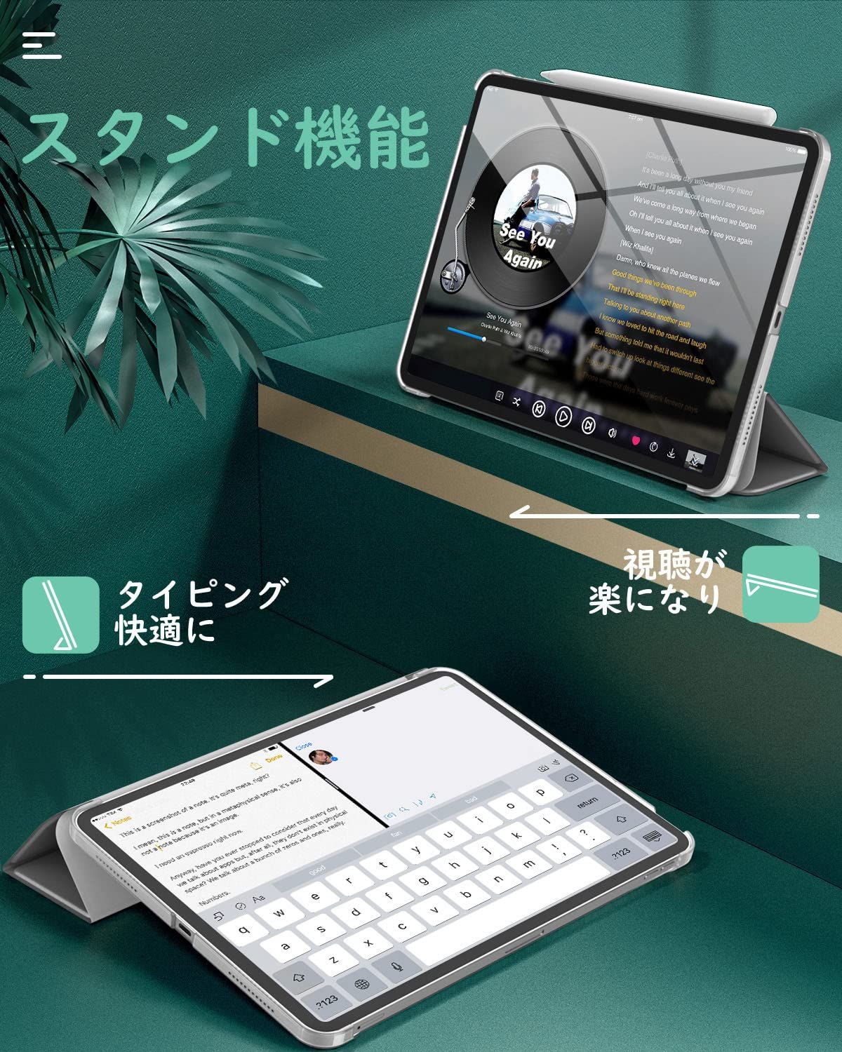 「前蓋PUレザー+背面半透明PC」 ケースの蓋は耐久性に優れた高級PUレザーで仕上げられて、インナーの素材は柔軟なマイクロファイバー製で、端末が摩擦により発生する擦り傷を和らげます。iPadをしっかりと保護できます。背面ケースは無色半透明PC製で薄型一体式手帳型全保護仕様となっており、優しい手触り感じがして、取付やすくなっています。