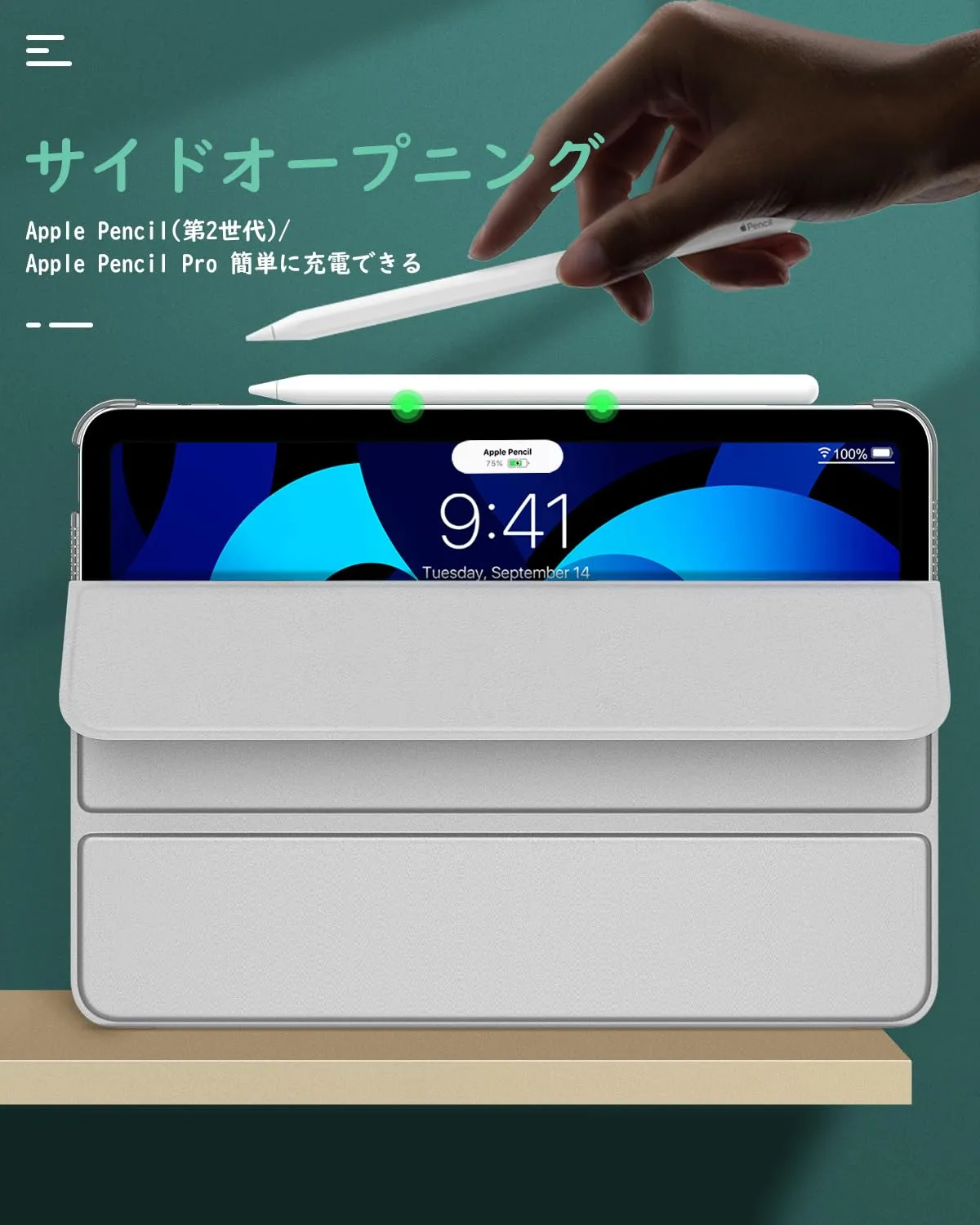 「ぴったり着装」 専用設計された全面保護ケースとなっているため、ケースを装着したまま電源ボタン、音量ボタン、写真を撮る、充電等すべての機能にアクセスできます。ApplePencil USB-C(iPad Air 11インチ用)の磁気吸着、Pencil Pro(iPad Air 11インチ用)及び ApplePencil第2世代(iPad Air 第5世代/第4世代 10.9インチ用)のワイヤレス充電に対応できます。