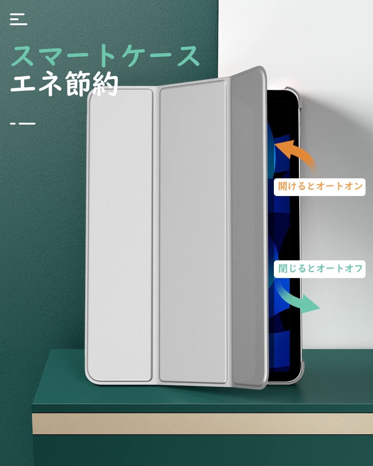 「オートスリープ機能」 オートスリープ機能でカバーを開ける閉めることで電源自動的にオン・オフなります。マグネット内蔵されているためカバンに入れてもカバーが勝手に開けることを心配必要なくしっかり閉められます。