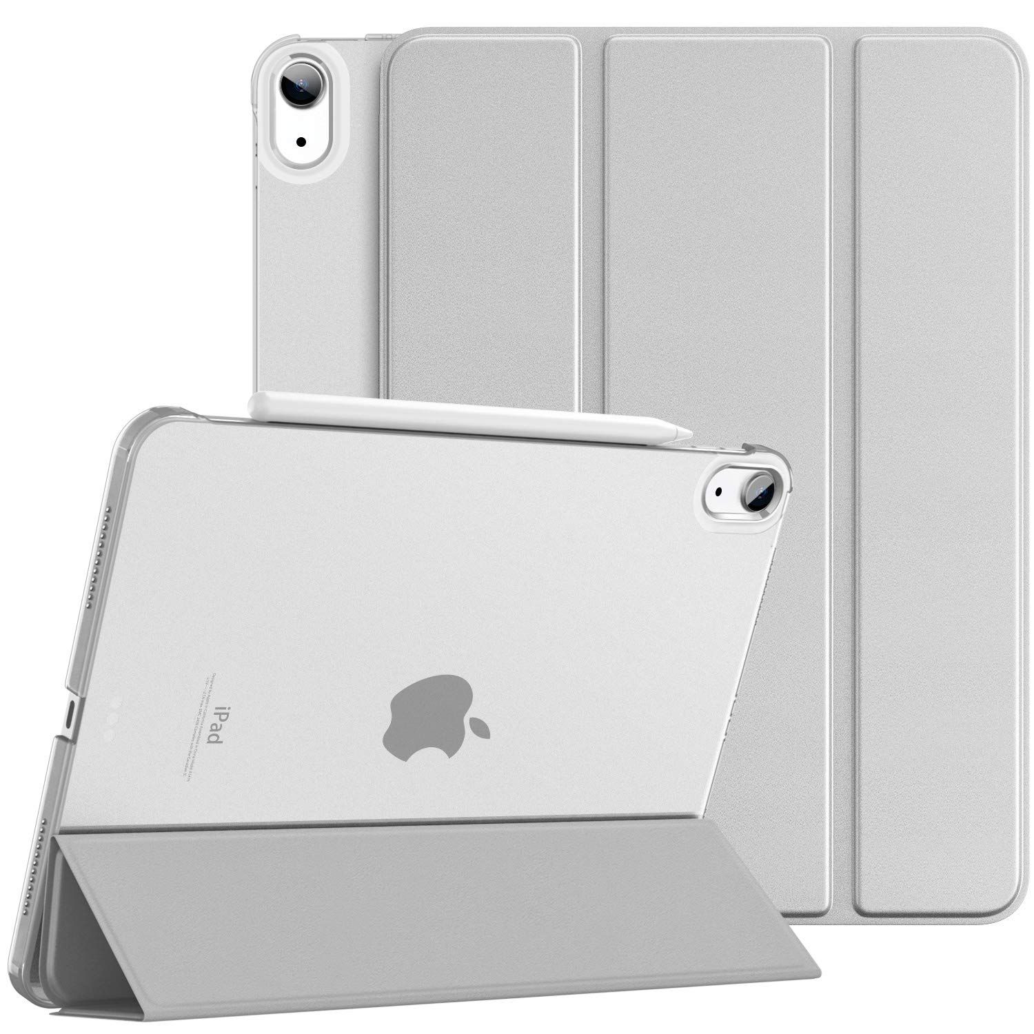 iPad Air 11インチ M3/M2 ケース 2025/2024 Dadanism iPad Air 11インチ/Air 5 Air 4 10.9インチ カバー Air 11 第7世代/第6世代 オートスリープ 三つ折り スタンドケース PU+PC 半透明 PencilPro/第2世代ワイヤレス充電 シルバー