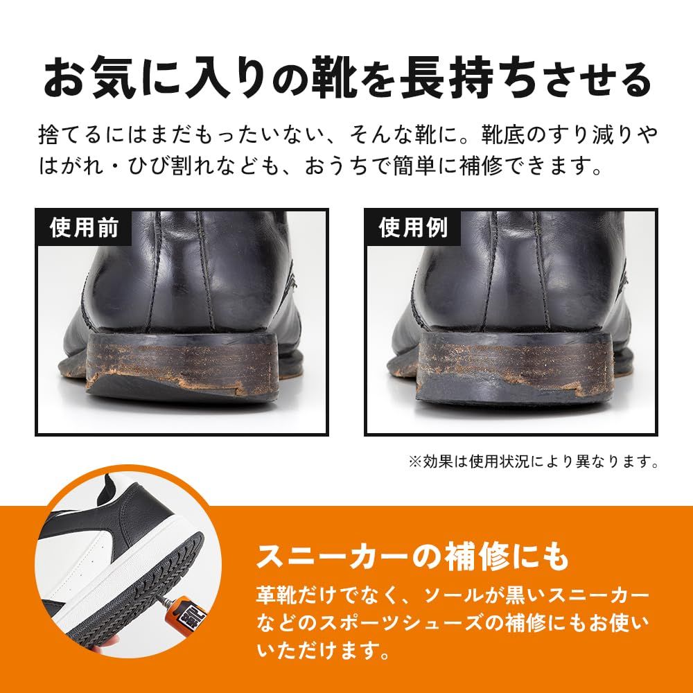 【お気に入りの靴が長持ち】靴底のすり減りをおうちで簡単に補修!ゴムや皮革への接着性に優れている補修剤なので、ひび割れ・剥がれの補修にも使えます。