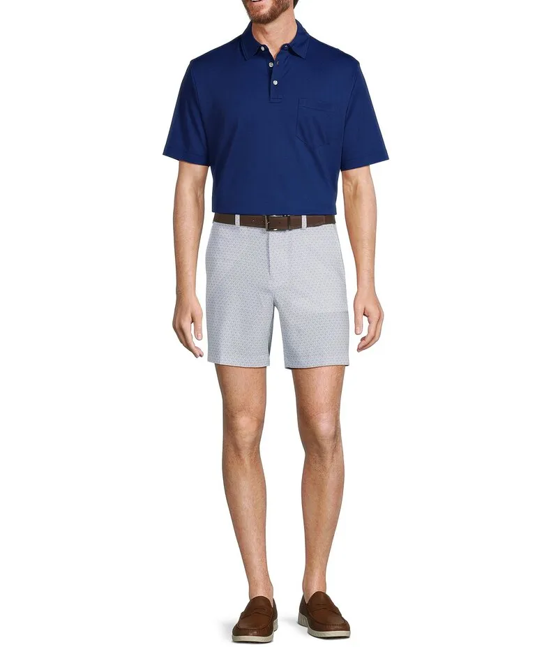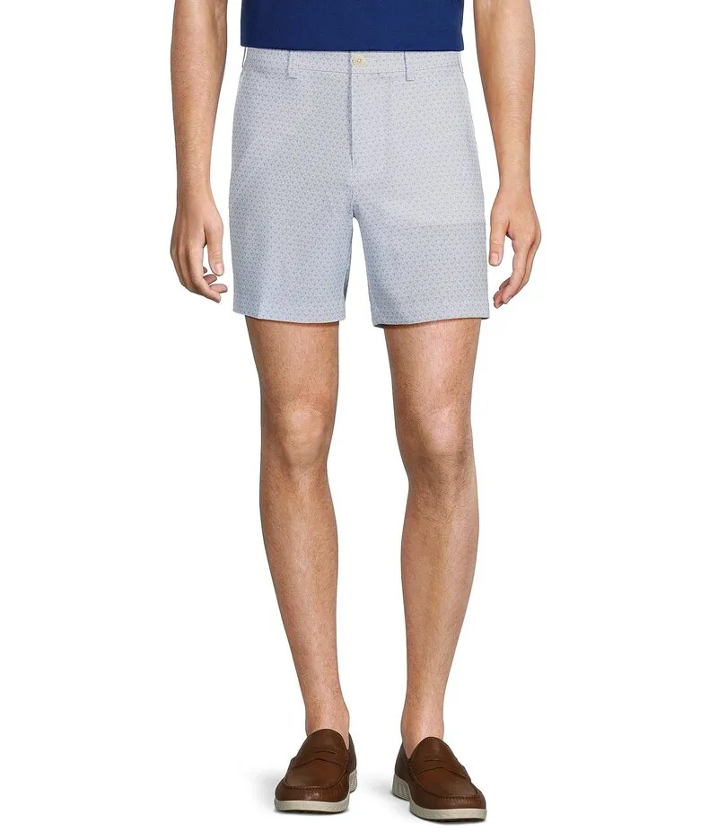 Roundtree Yorke Performance Flat Front Straight Fit Golf Ball Print Inseam Shorts Bright White