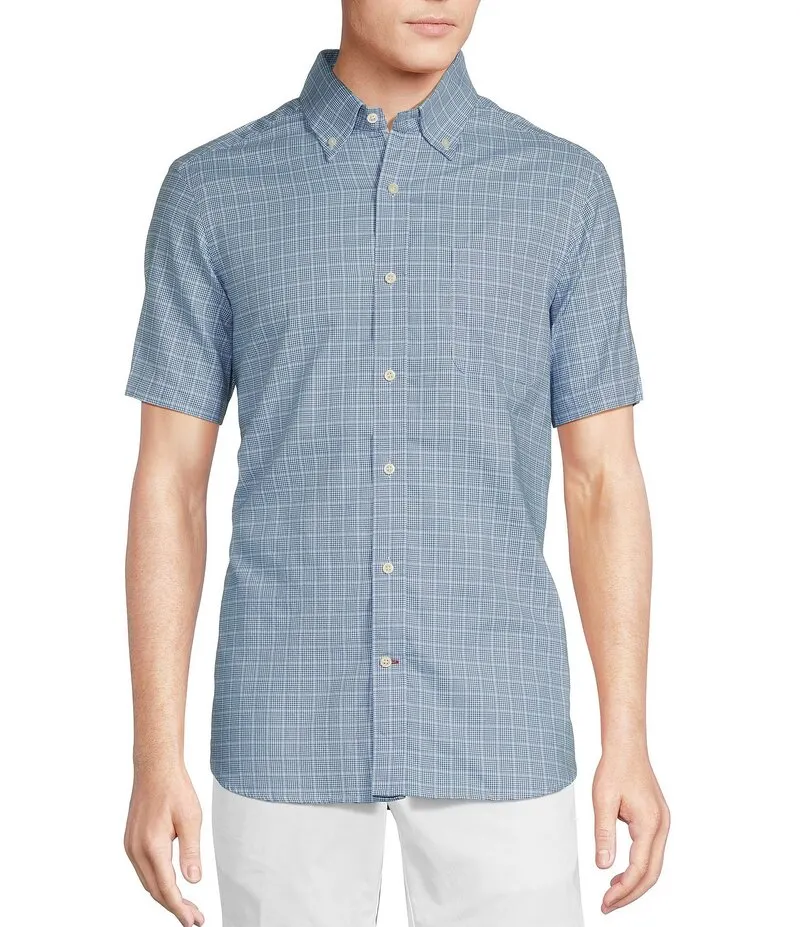 Cremieux Blue Label Glen Plaid Lightweight Oxford Short Sleeve Woven Shirt Blue
