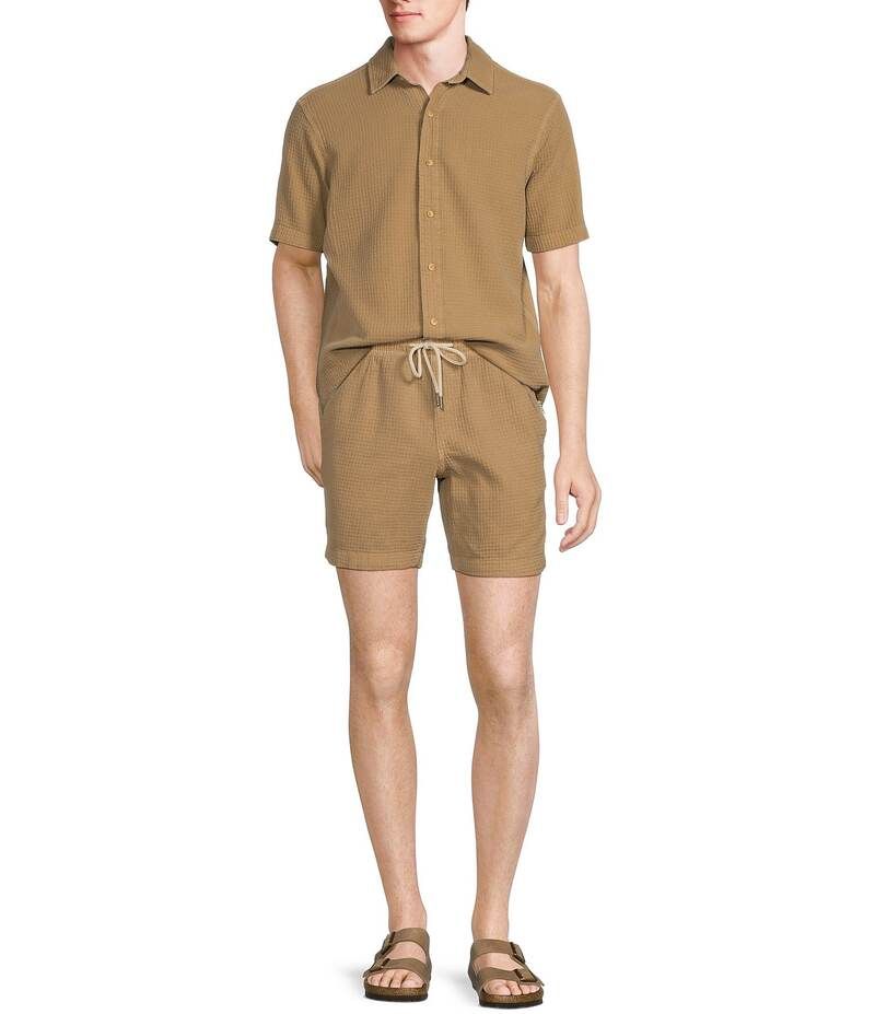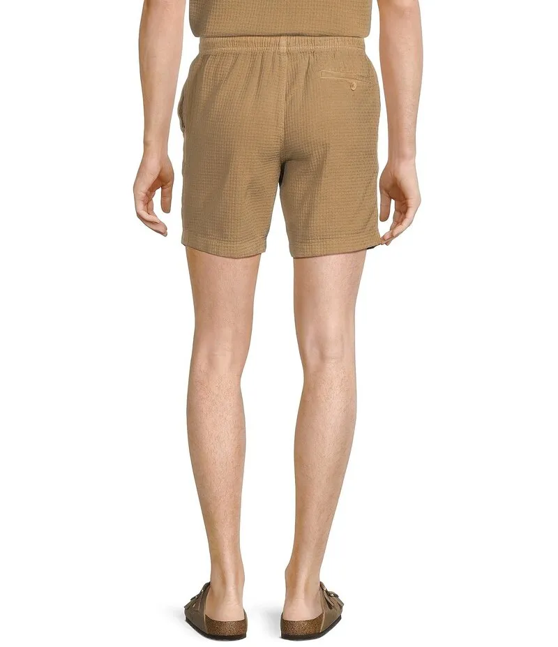Rowm Flat Front Drawstring Garment Dyed Solid Inseam Waffle Shorts Khaki