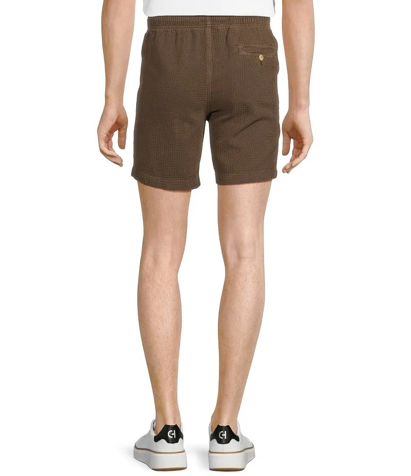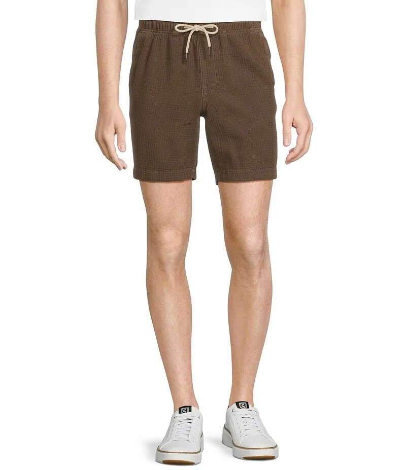 Rowm Flat Front Drawstring Garment Dyed Solid Inseam Waffle Shorts Mocha