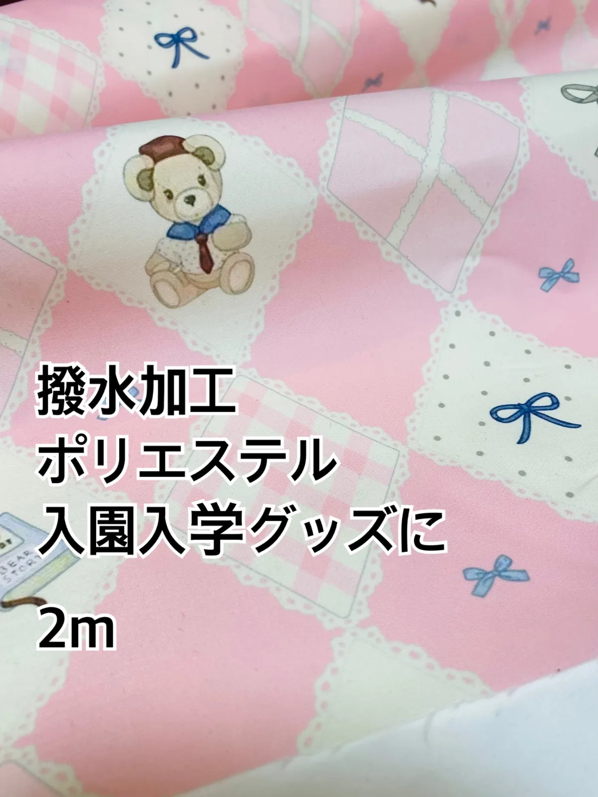 2m 高撥水 撥水加工 ポリエステル生地 ピンク 生地 クマ