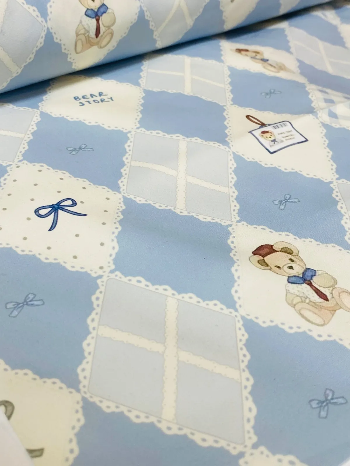 高撥水 撥水加工 ポリエステル生地 撥水ポリエステル生地は、水を弾く加工(撥水加工)が施されたポリエステル素材で、軽量、速乾性、高耐久が特徴です。雨傘、レインコート、バッグ、エプロン、アウトドア用品に最適で、洗濯しても乾きが早い利点があります。 68×2m 商用利用可能 くま アーガイル柄 ブルー 延長やおまとめ等は質問よりお気軽にお声掛け下さい。