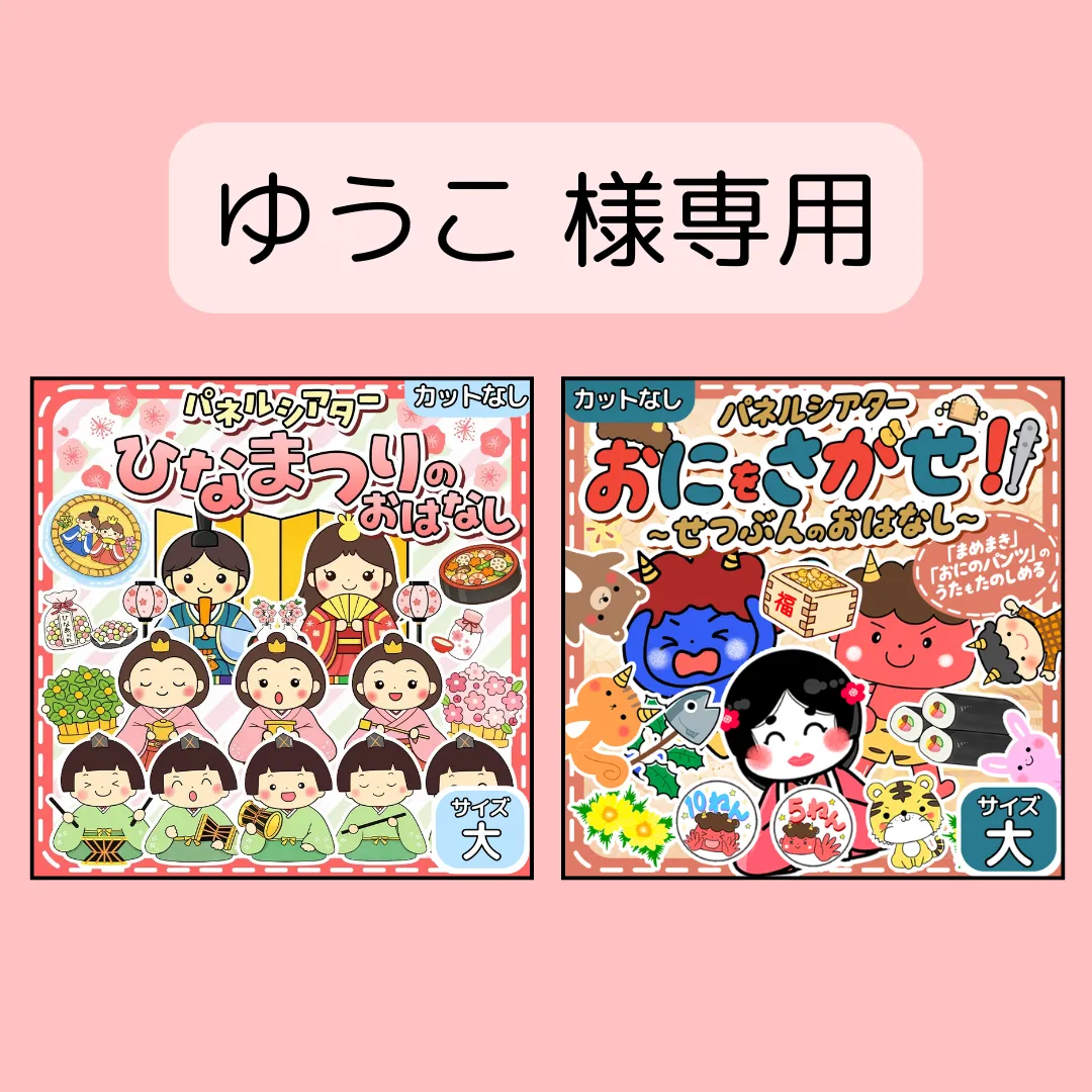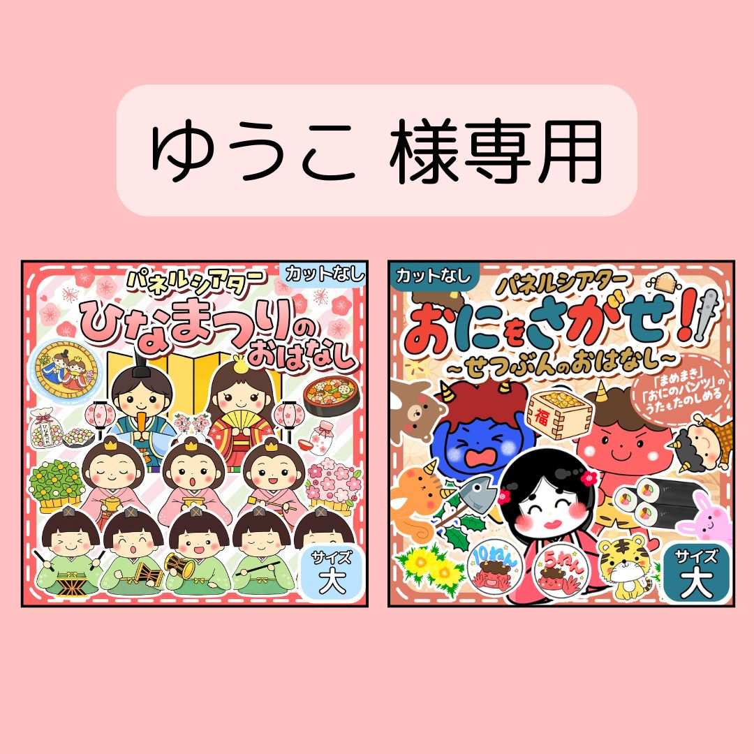 ゆうこ様専用セット商品です。 ・ひなまつりのおはなし →サイズ大 カット無し 1980円 ・せつぶんのおはなし → サイズ大 カット無し 1890円 計3870円 おまとめ割-100円 合計3770円 宜しくお願いします(^^)