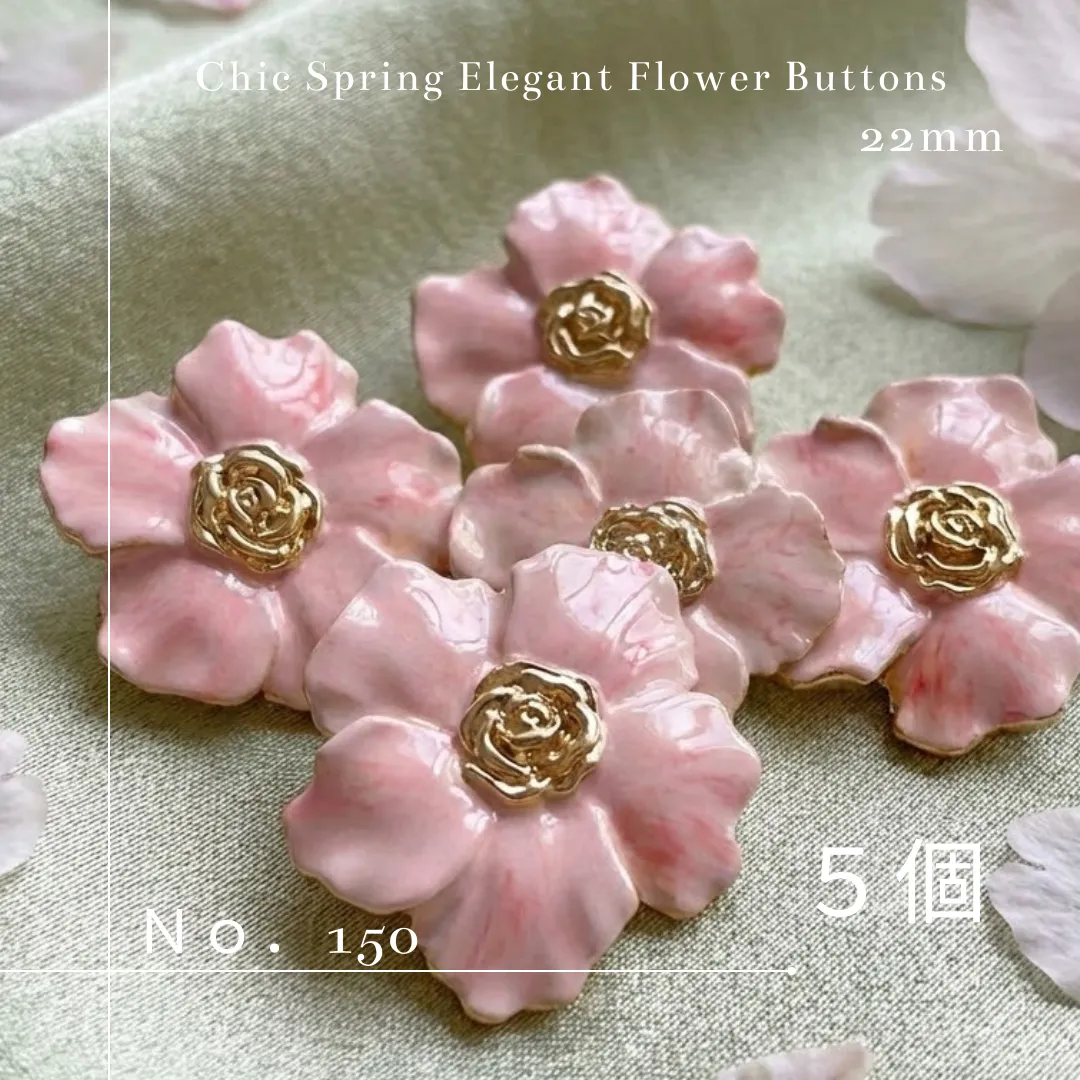 【No.150】フラワーボタン 花 ピンク 22mm 5個 ハンドメイド エレガント