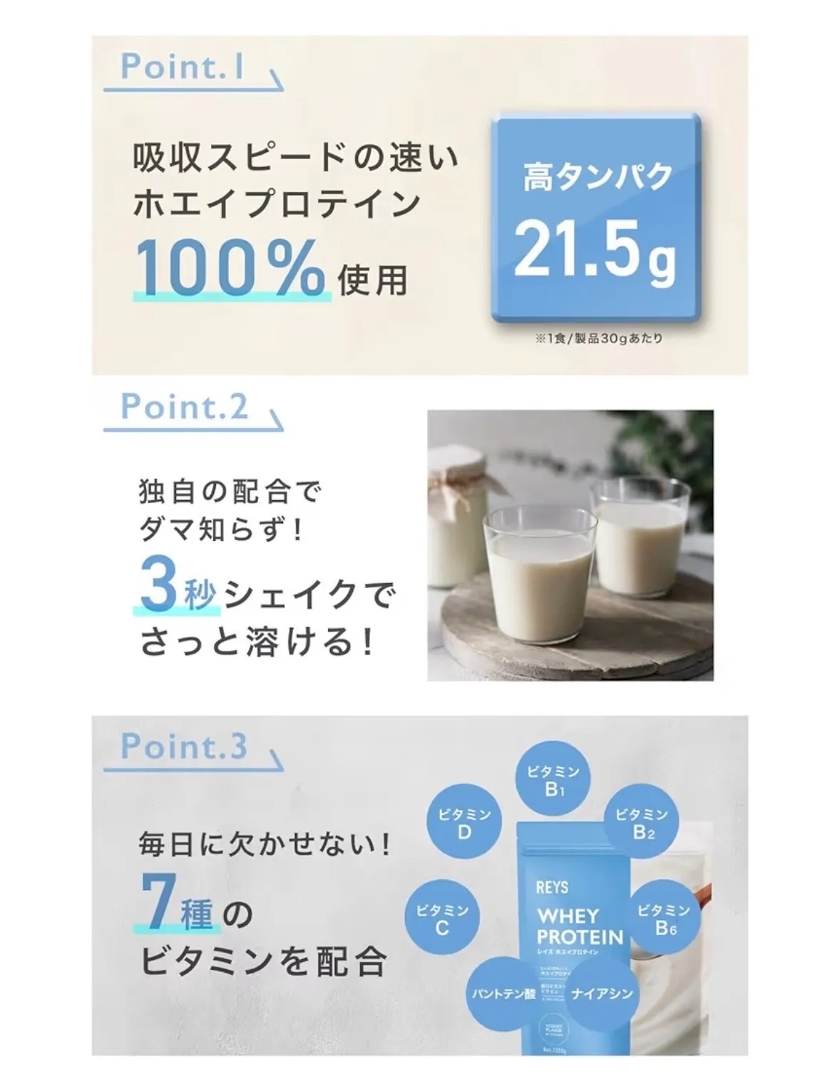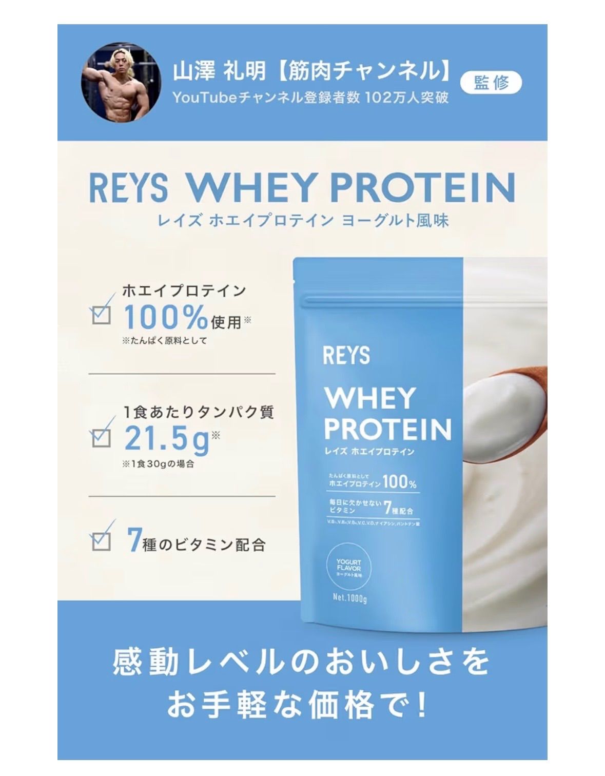 ✅ 厳選ホエイプロテイン100%使用