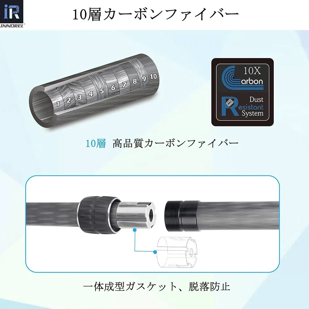 【高品質】センターポールのパイプが10層カーボンファイバーで作られ、軽くて頑丈です。最大35kgまでの荷重性能があります。