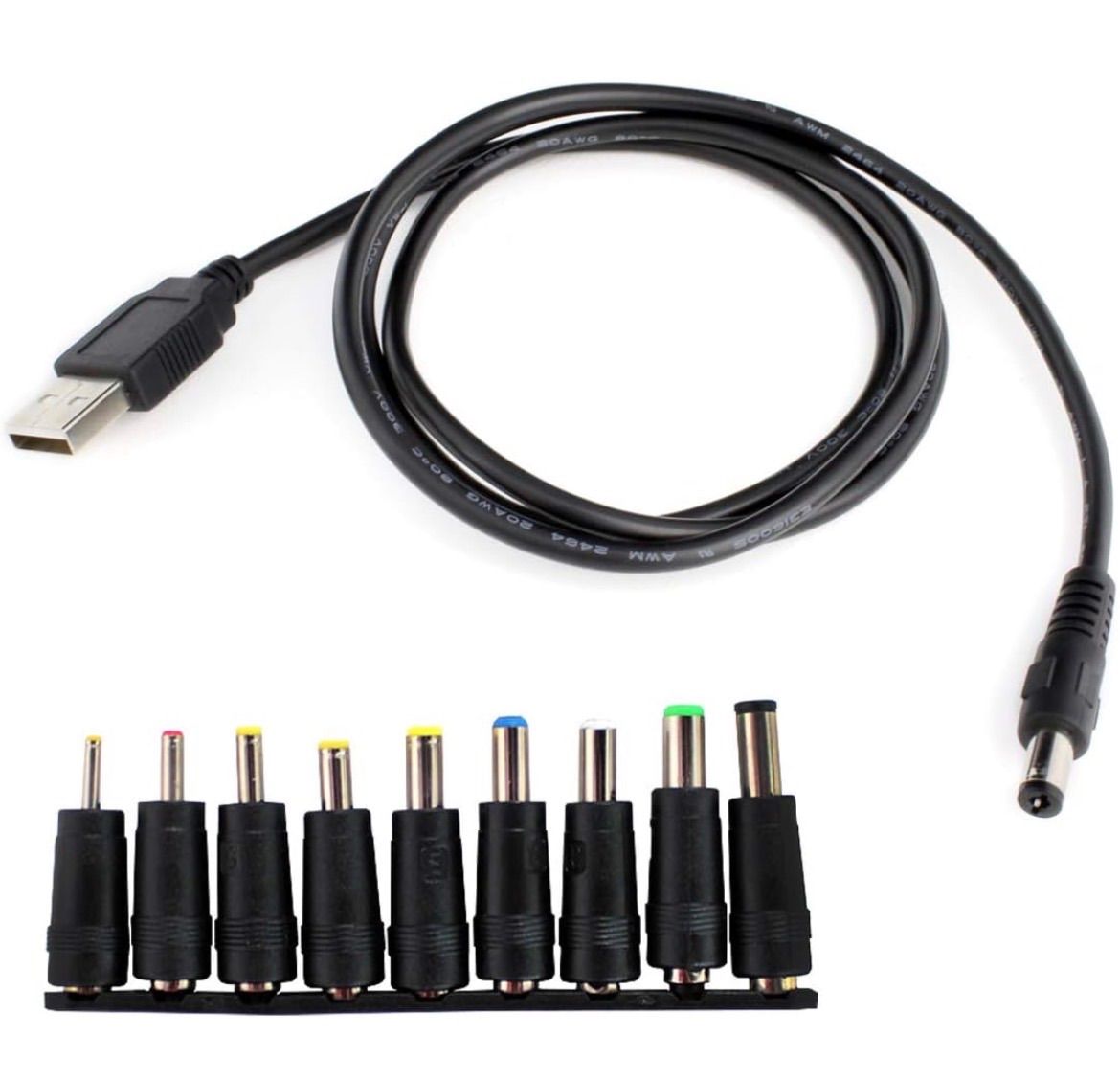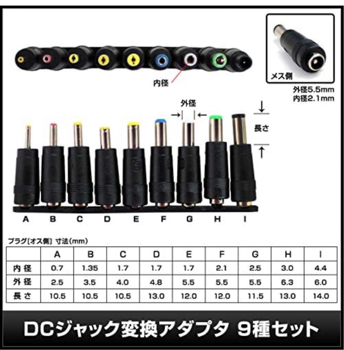★Kaito Denshi(海渡電子) USB DCプラグ DCジャック 5V オス 外径5.5mm × 内径2.1mm ケーブル1m 変換 アダプタ 9種類セット