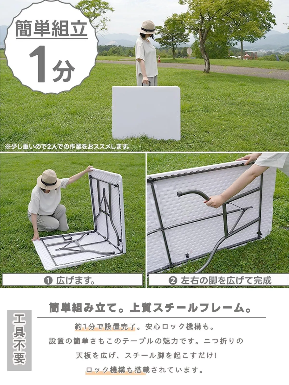 【工具不要ですぐに使える】シンプルなデザインで、テーブルの脚を開ければすぐに使えます、面倒な組み立てはありません。安心安全にお届けするためにしっかりと梱包しています。