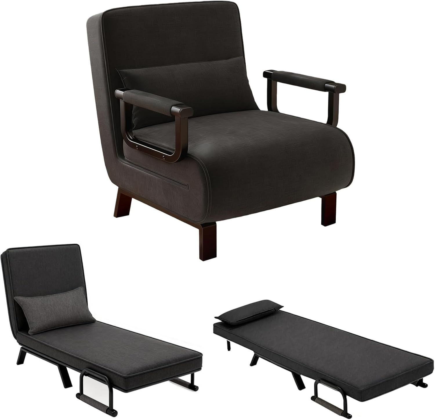 ソファベッド 折りたたみ 一人用 高反発素材 5段階調整可能 3WAY ソファー クッション付き 肘掛付き ソファー椅 コンパクト 省スペース 簡単収納 一人暮らし リビング 寝室 来客用 オフィスの昼休み インテリア用品 組立簡単 説明書付き 幅65cm (ブラック)