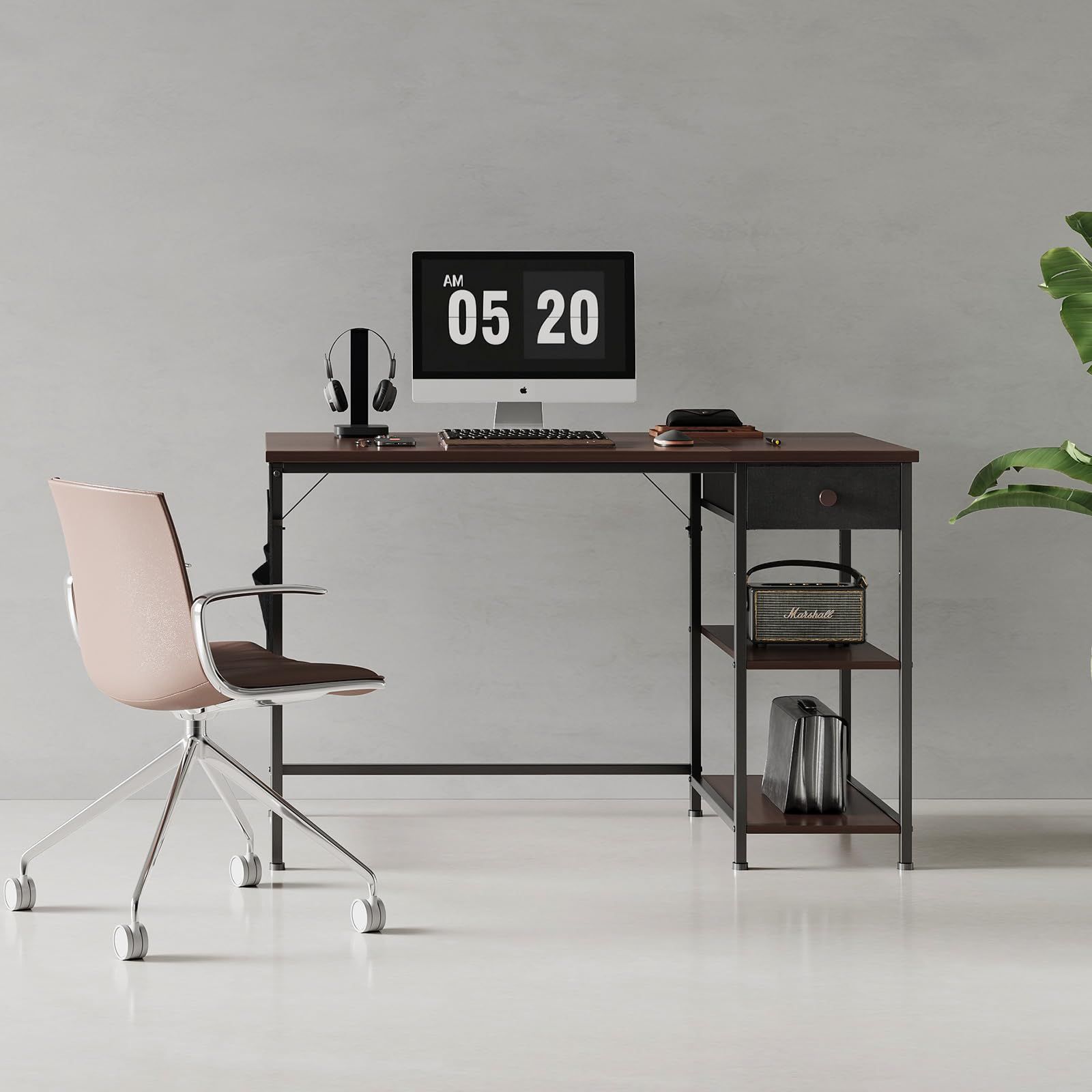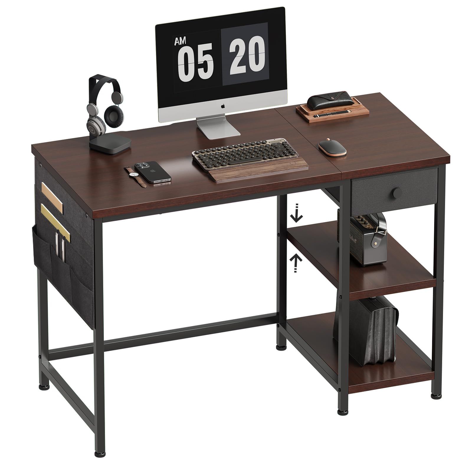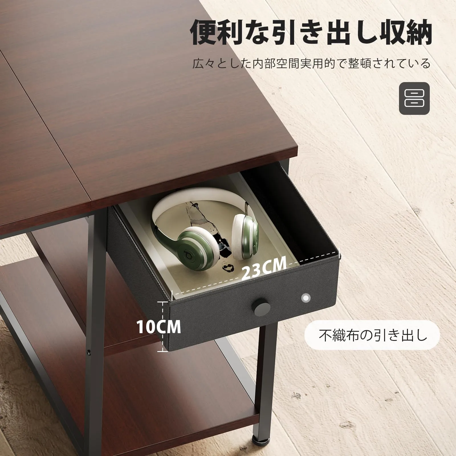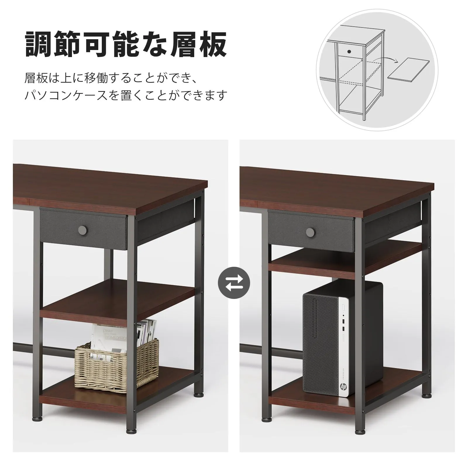 デスク 机 pcデスク パソコンデスク 幅100cm×奥行48cm 布製引き出し付き つくえ 収納ラック付き 収納袋付き 勉強机 学習机 左右入替可 テレワーク 在宅勤務 ダークブラウン
