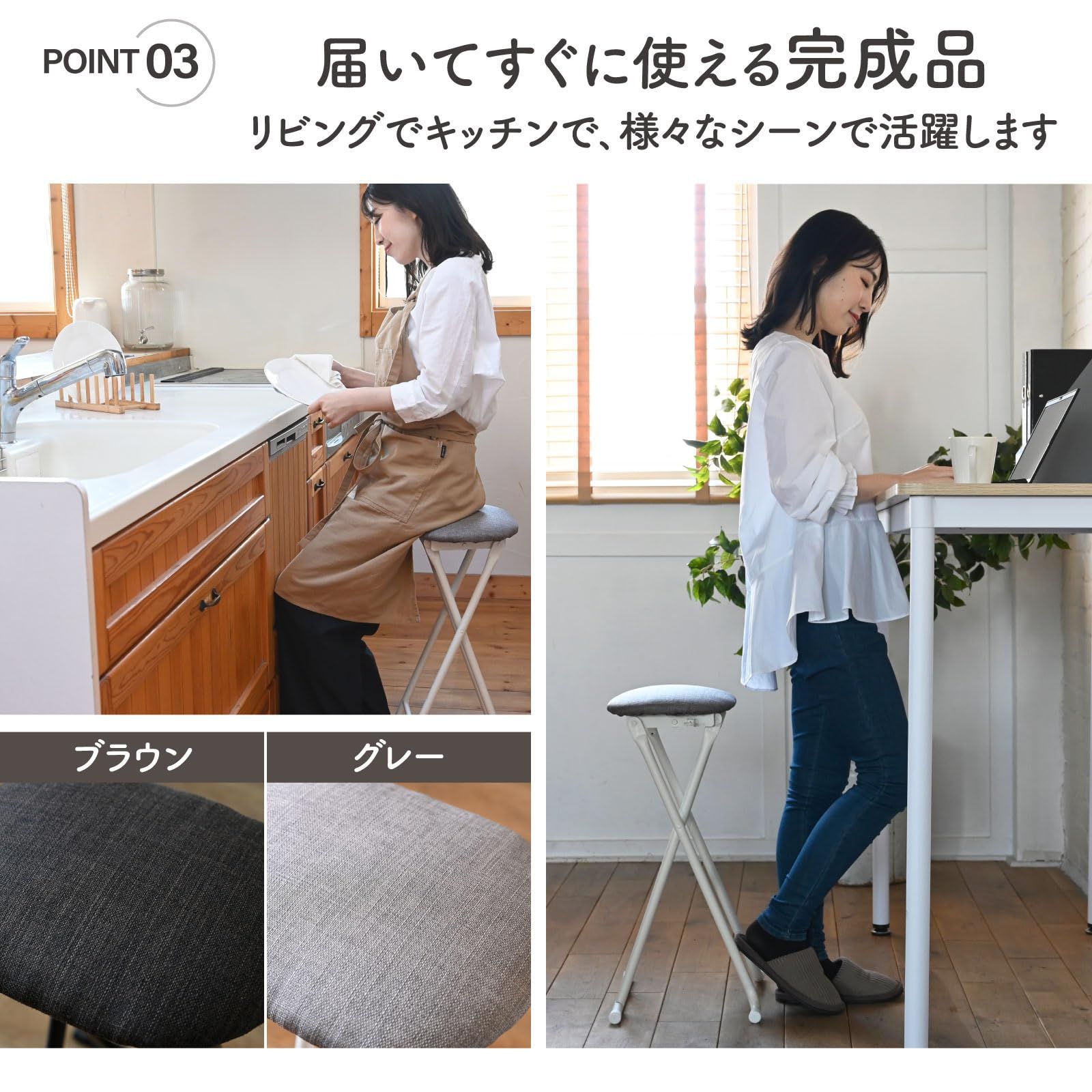 山善(YAMAZEN) チェア スツール 折りたたみ椅子 ハイタイプ カウンターチェア オーバル 軽量 コンパクト スリム 収納 完成品 幅36×奥行30×高さ61.5cm グレー/ホワイト OYZX-02H(GY/WH)