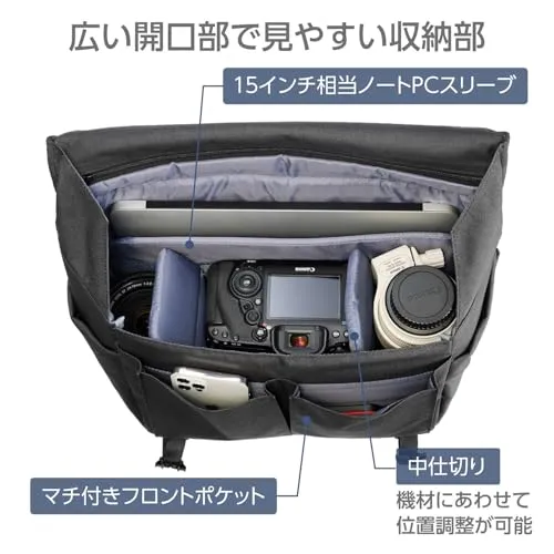 取り回しが良くフィット感に優れた、街歩きに適したメッセンジャーバッグスタイルのカメラバッグ Lサイズ(約8L)