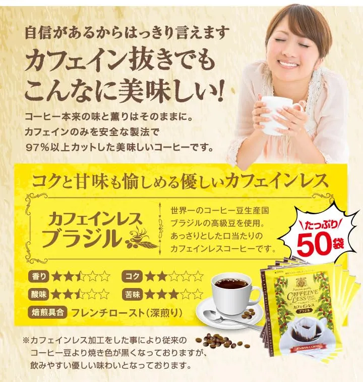 澤井珈琲 カフェインレス ドリップコーヒー コーヒー 専門店 カフェインレス ブラジル ドリップバッグ コーヒー 8g×50袋入り セット・賞味期限、製造日はラベルに記載