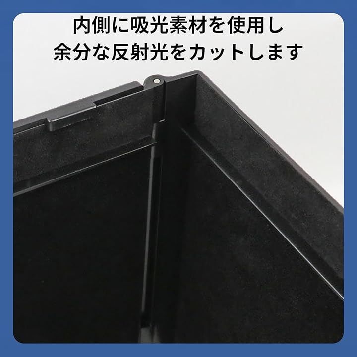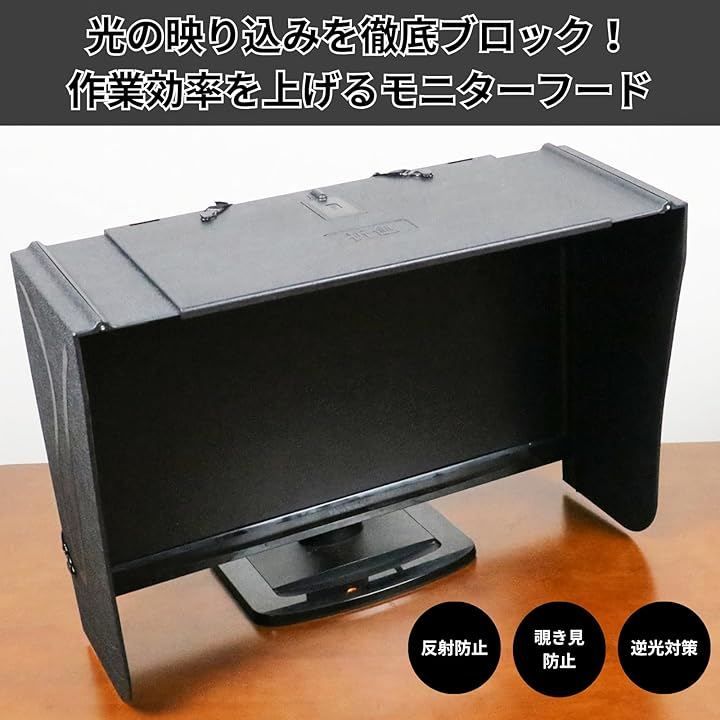 照明や外光の映り込みを徹底的にブロックして作業効率を飛躍的に向上させるモニターフードです。