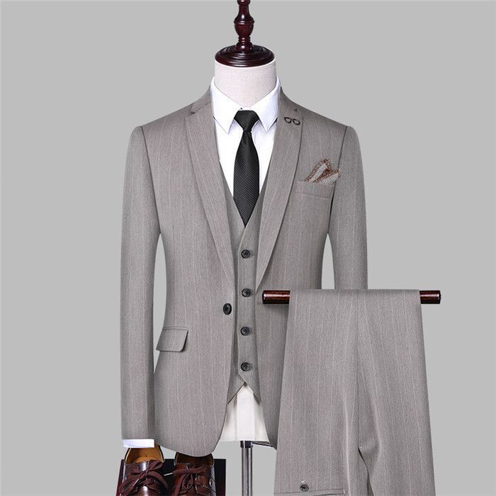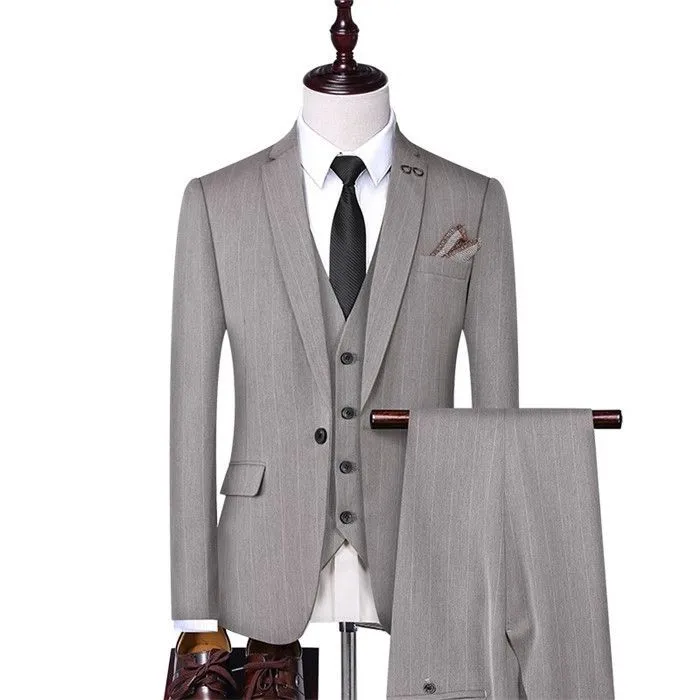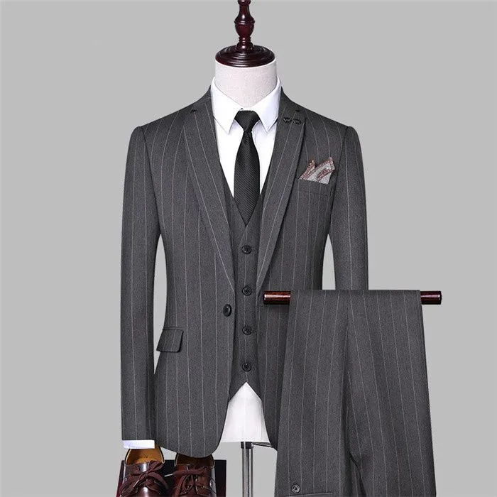 3点セット ストライプ柄 メンズスーツ セットアップ 細身 紳士服 結婚式 入学式
