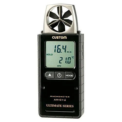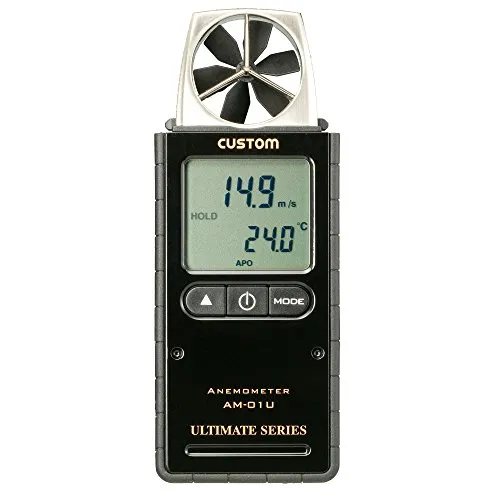 洗練された小型デザイン・ピアノブラック基調のデジタル風速計。