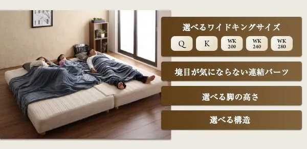 日本製ポケットコイルマットレスベッド マットレスベッド グランドタイプ ワイドK280 脚22cm