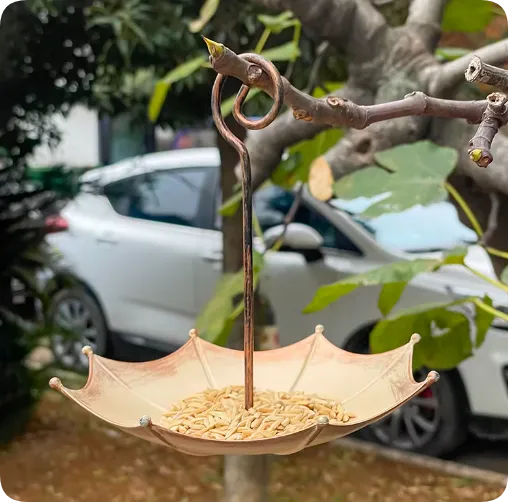 おしゃれで機能的な「吊り下げ バードフィーダー」は、小鳥や野鳥が訪れるガーデンにぴったりの給餌器です!逆さの傘のデザインは、ユニークでレトロな雰囲気を演出し、インテリアとしても楽しめます。簡単に取り付けられる壁掛け式なので、初心者でも手軽にご利用いただけます。金属製のため、耐久性もあり、長くご愛用いただけます。お庭に住む小鳥たちを観察しながら、癒しの時間をお過ごしください。