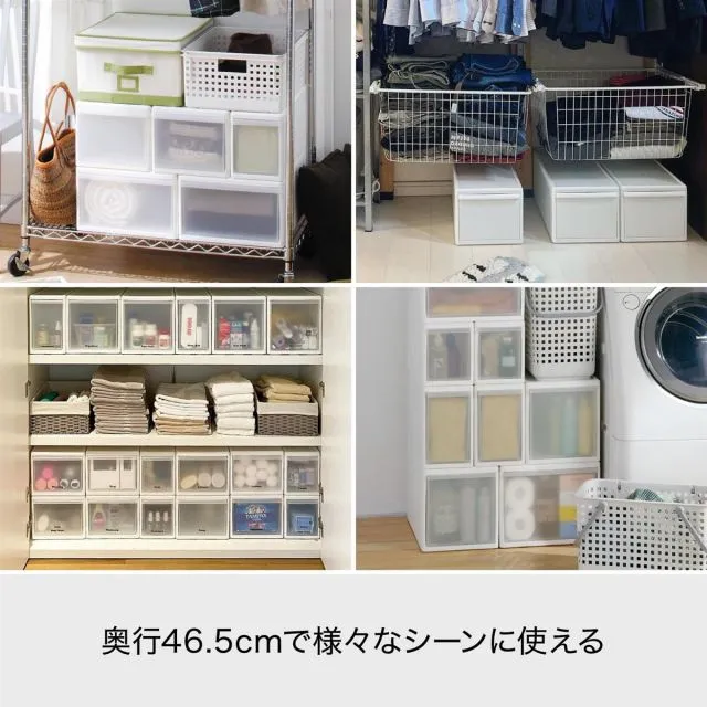 奥行き46cmタイプのメタルラックにピッタリな収納ケースです。