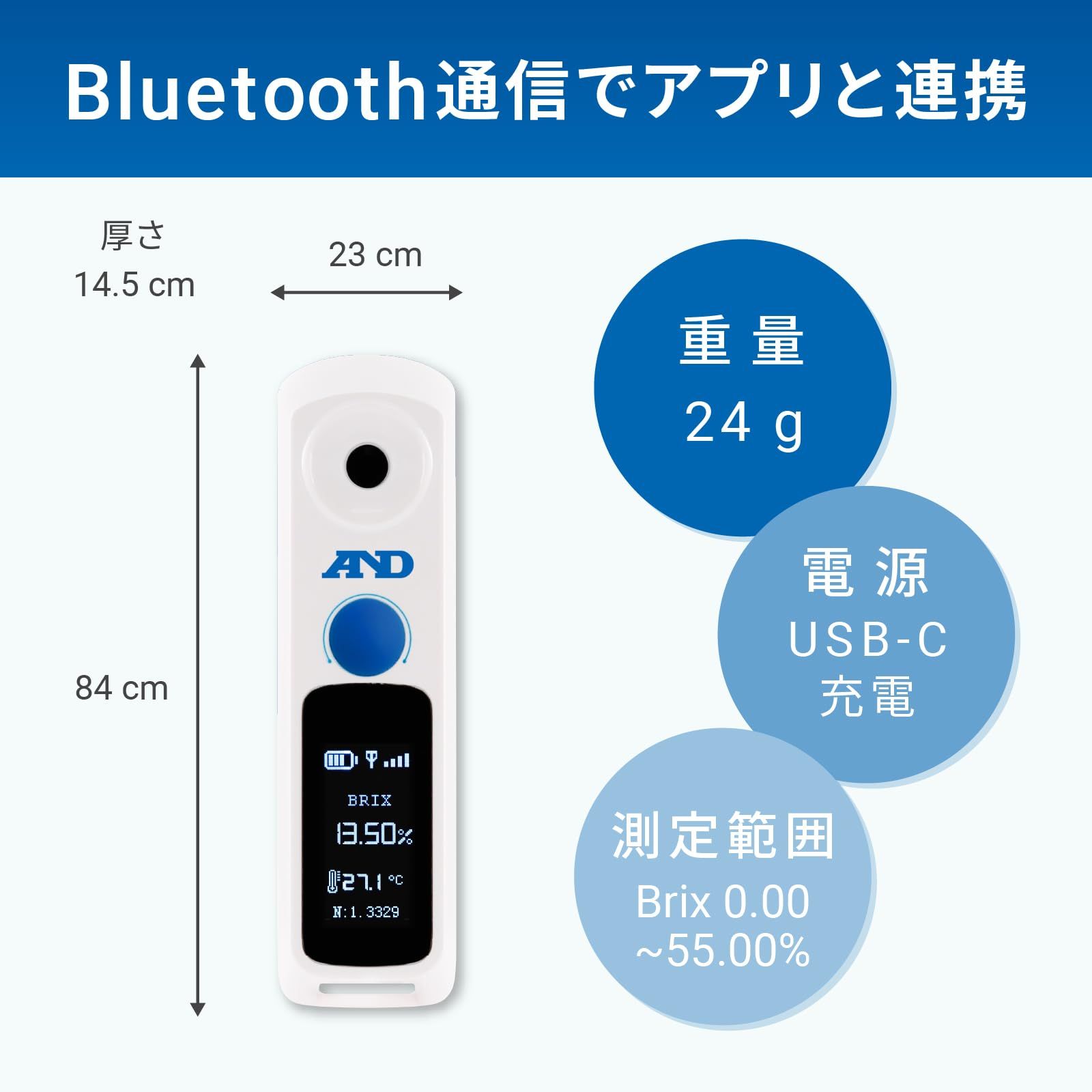 【測定範囲】Brix:0.00~55.00%、温度:-20.0~85.0℃