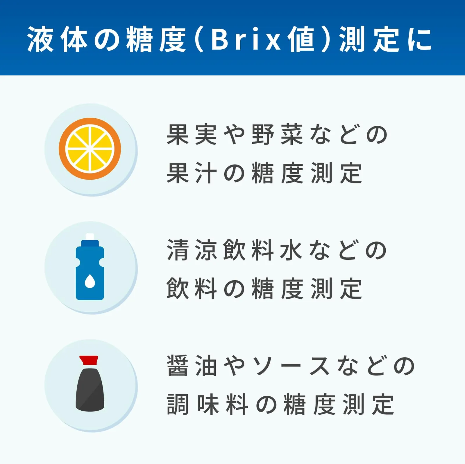 ◆果実・野菜や清涼飲料水、醤油・ソースなど、様々な液体の糖度測定が可能