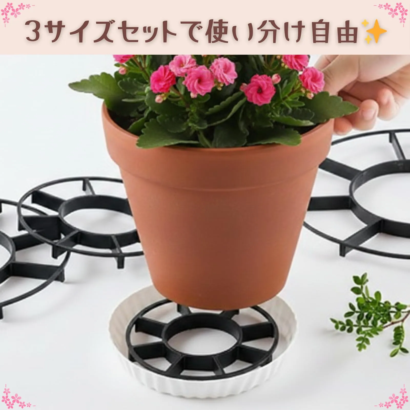 【抜群の通気性と排水性で植物の根腐れを徹底防止】SakuraLovely8の植木鉢スペーサーは、鉢底と地面の間に理想的な隙間を作ることで、空気の流通を劇的に促進します。水やり時に溢れた水が底に溜まるのを防ぎ、水分が停滞しにくい構造を採用しているため、多肉植物やハーブ、大切な観葉植物の根腐れやカビの発生を効果的に予防。鉢底ネット単体では難しかった「底面全体の通気」を確保し、大切な植物の健やかな成長を足元から力強くサポートします。