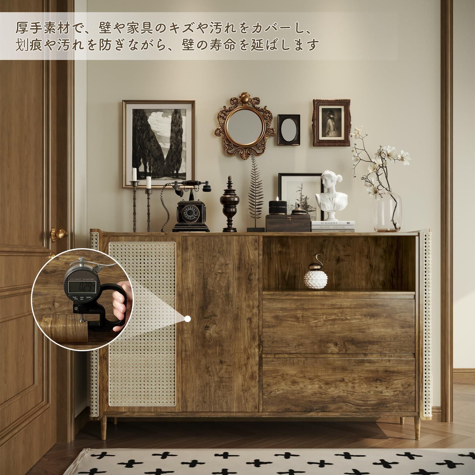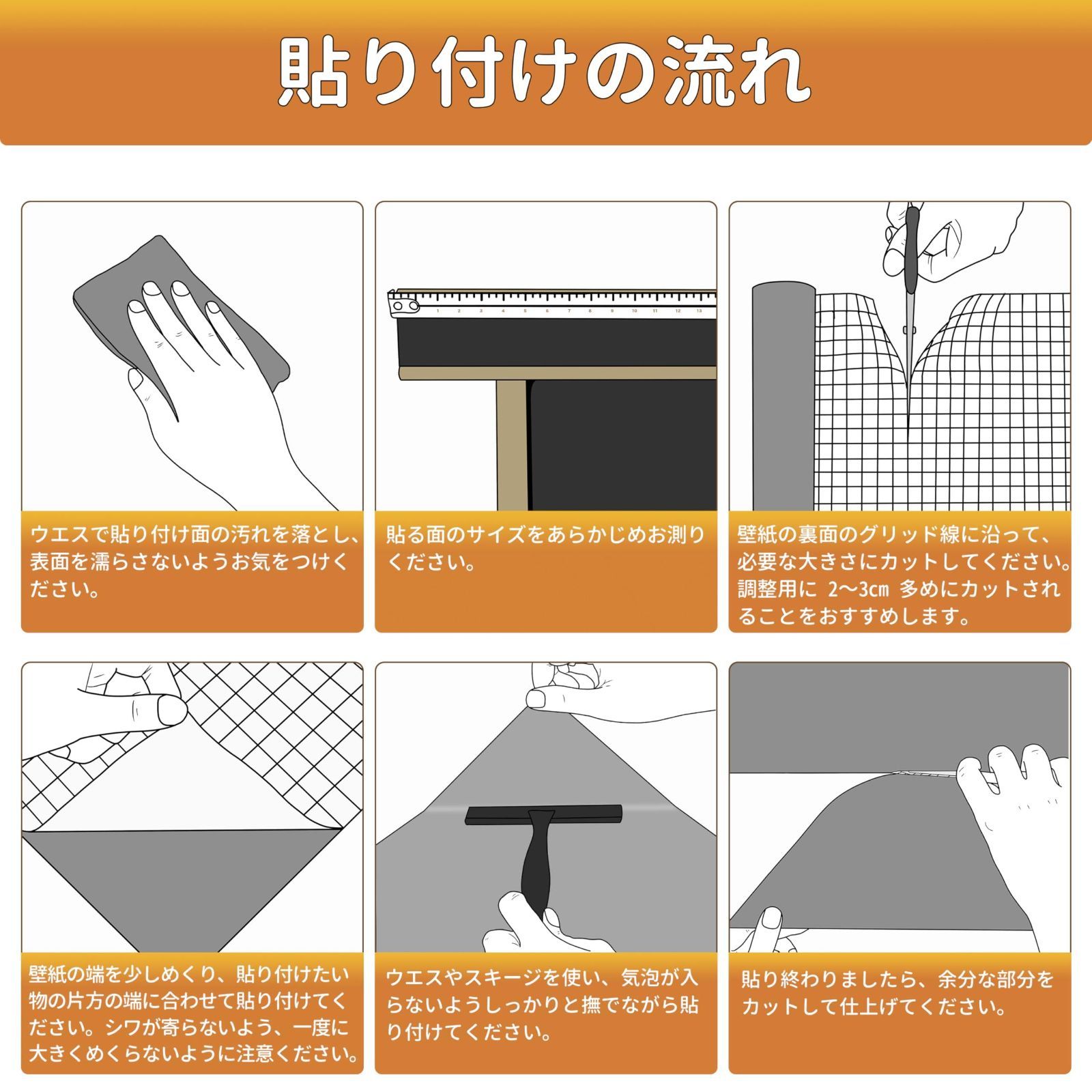 多用途シーン:壁紙、机、リビング、ダイニング、バルコニー、キッチン、お手洗い、クローゼット、テレビの背景、本棚、古い家具など、水やほこりのない平らで滑らかな面に貼り付け可能です。