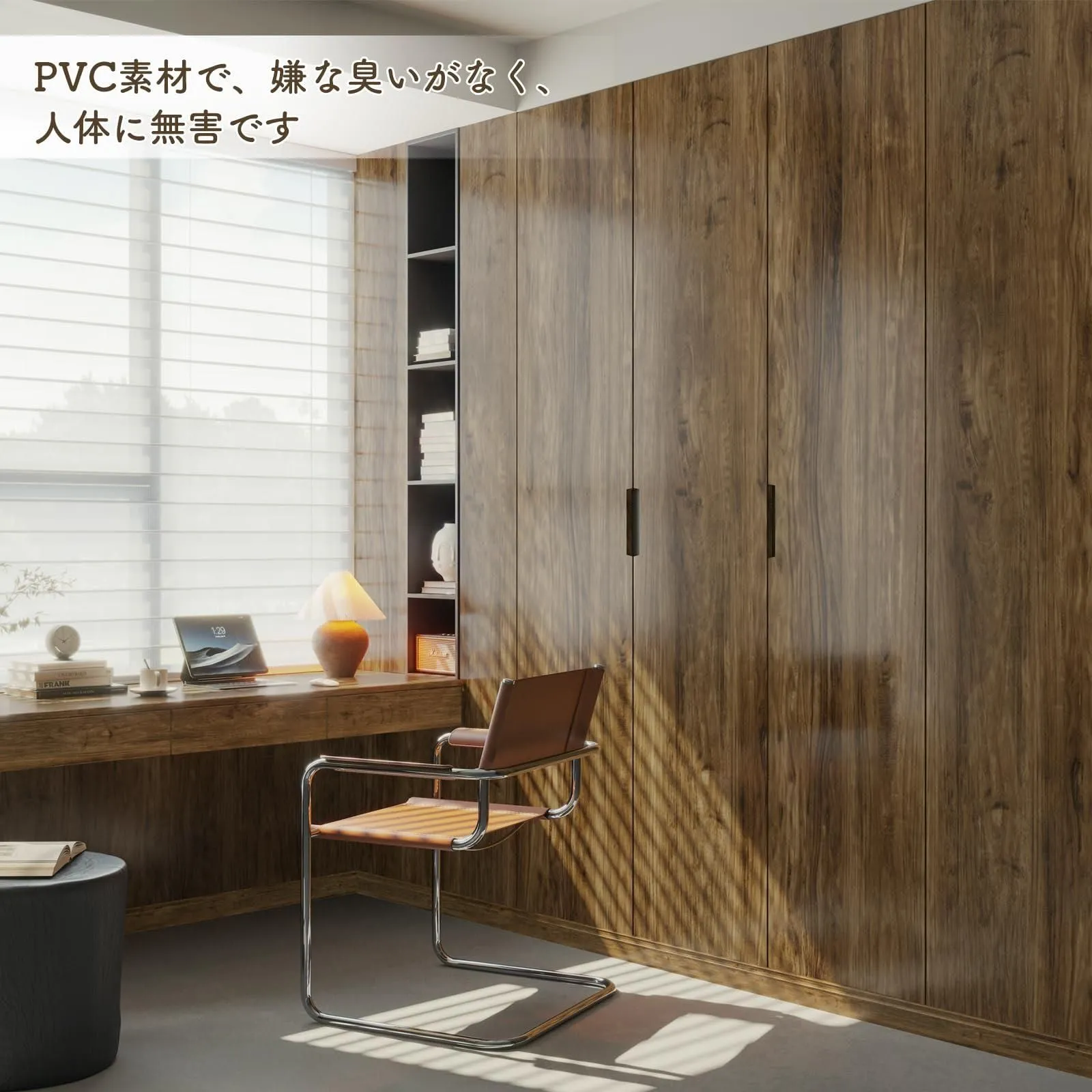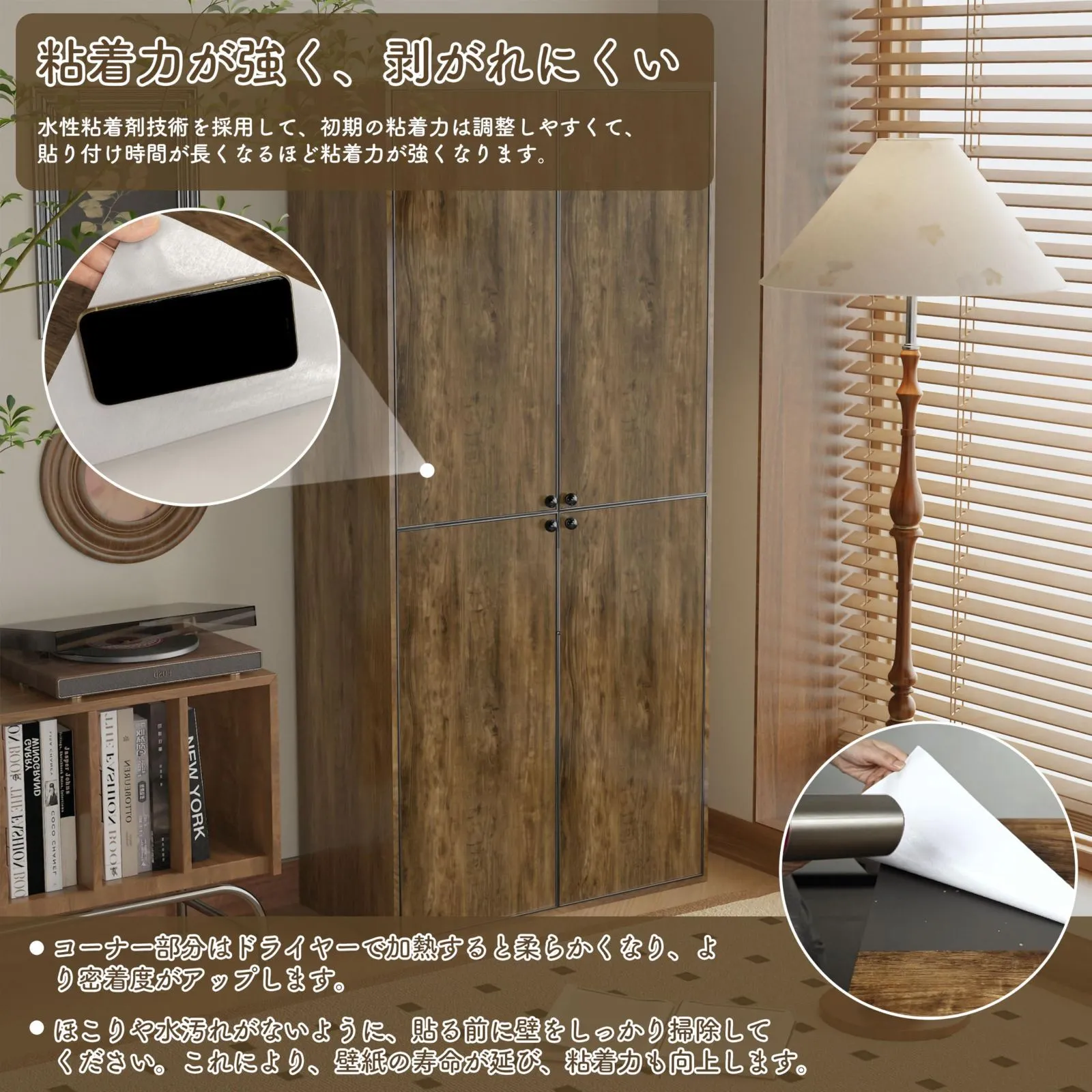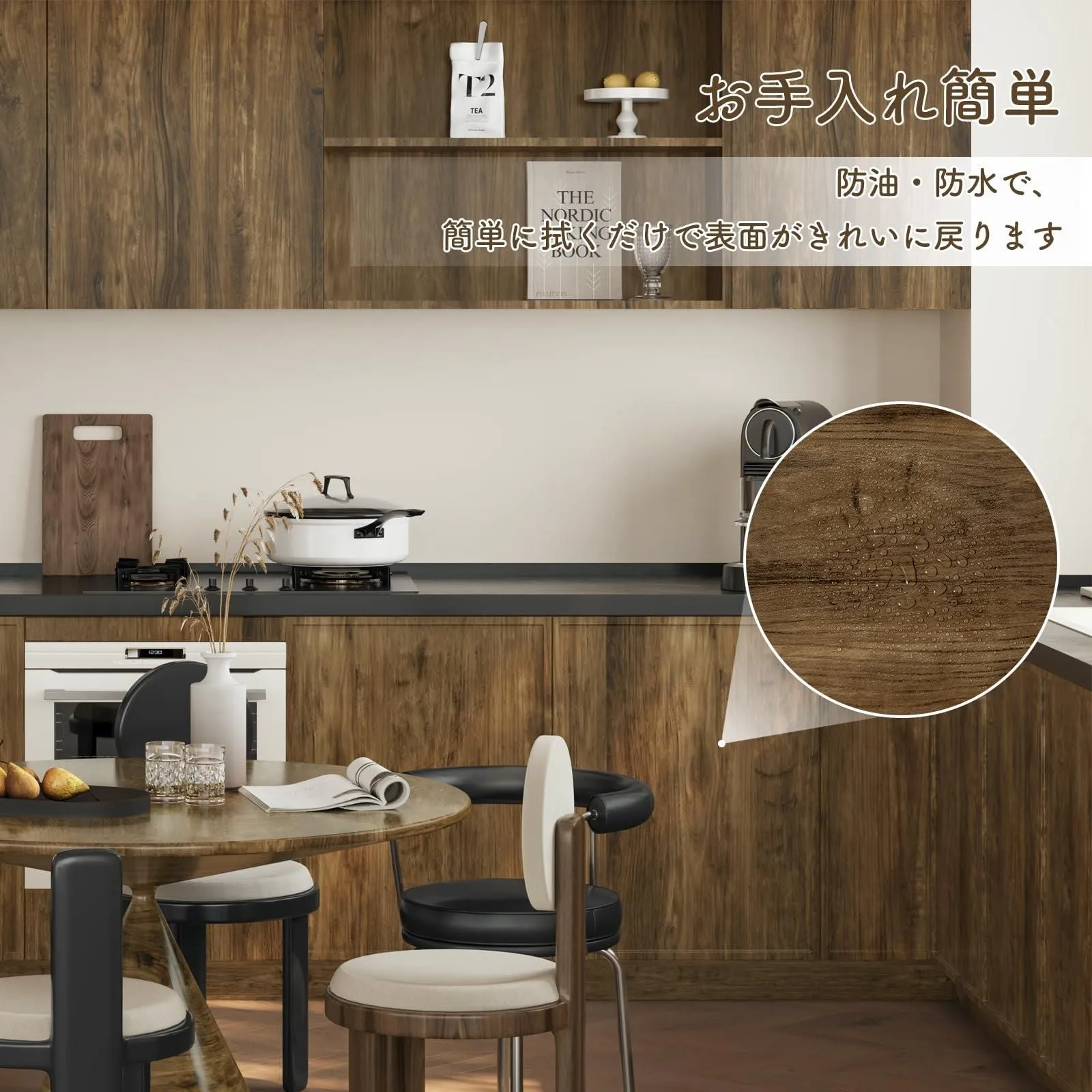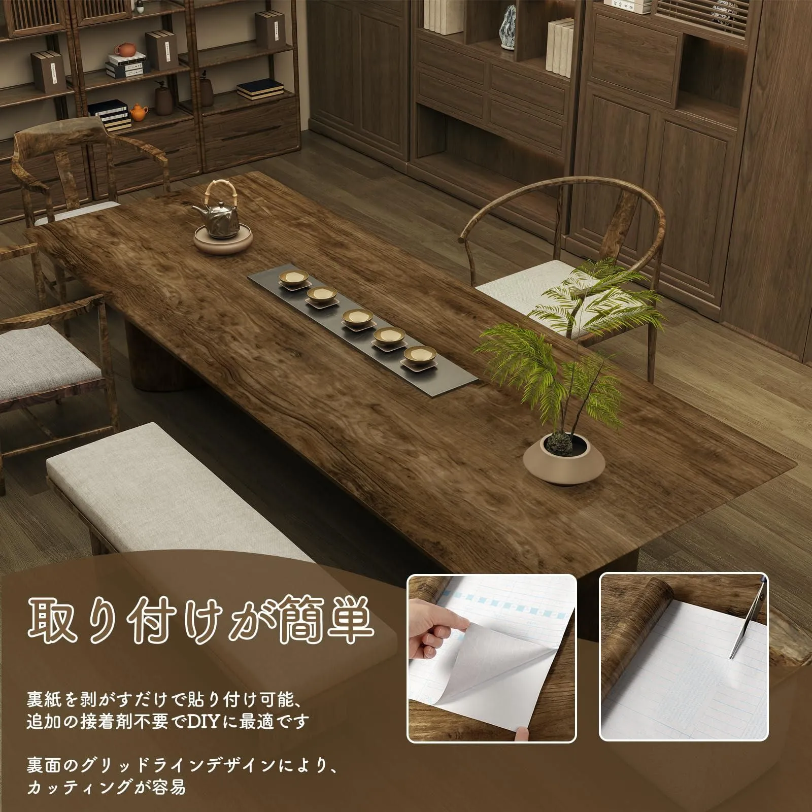 幅30 cm x 長さ2 m_茶色 practicalWs 壁紙シール リメイクシート 木目 褐色 壁紙 のり付き 防水 防汚 耐熱 剥がせる壁紙 ダークブラウン 木目調 多用途キッチン、キャビネット、テーブル、ドア、 家具のDIY 30cmX2m